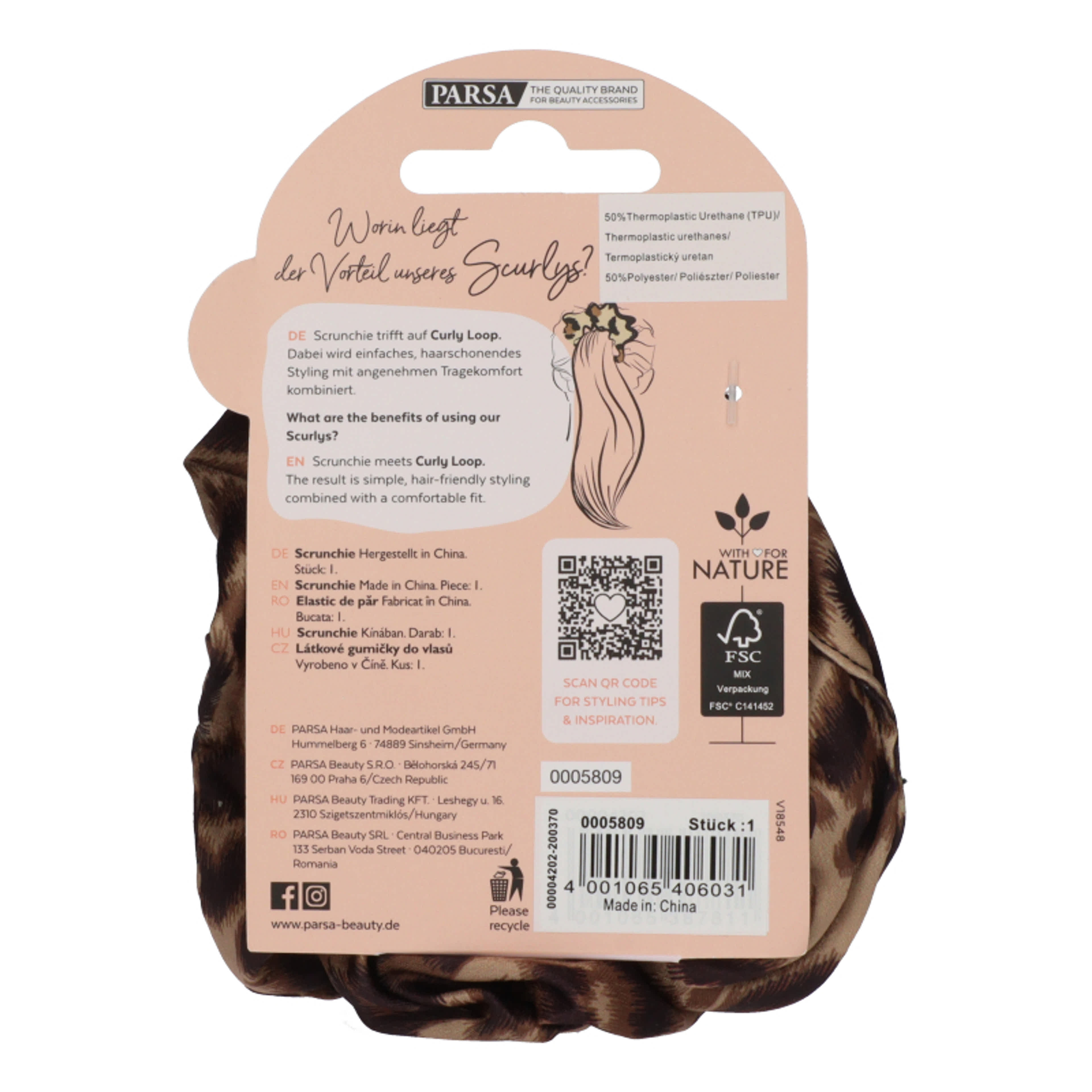 Parsa Beauty hajgumi rózsaszin, fekete, leo mintas - 1 db