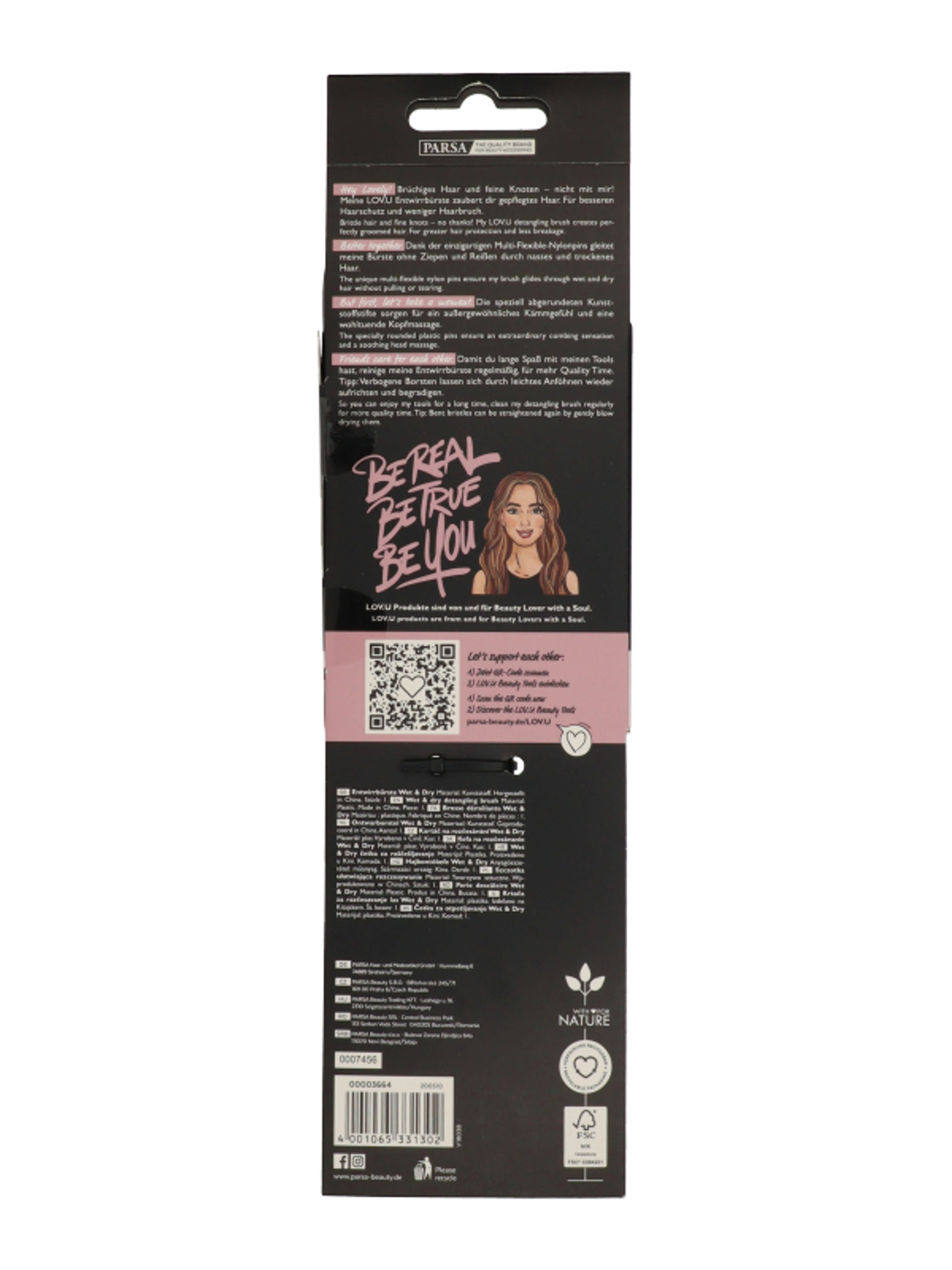 Parsa Beauty Love.U nagy ovális hajkefe /rózsaszín, fekete - 1 db
