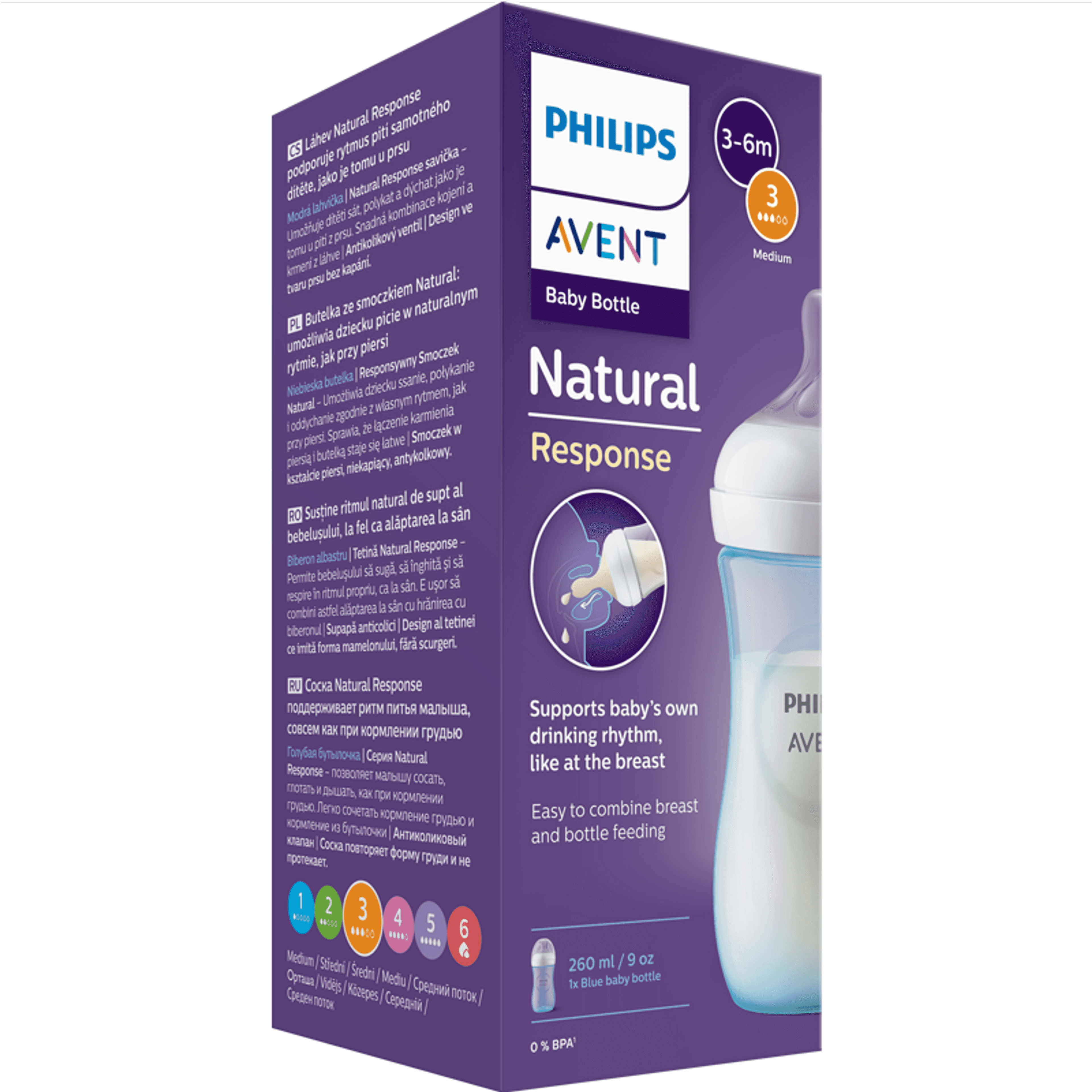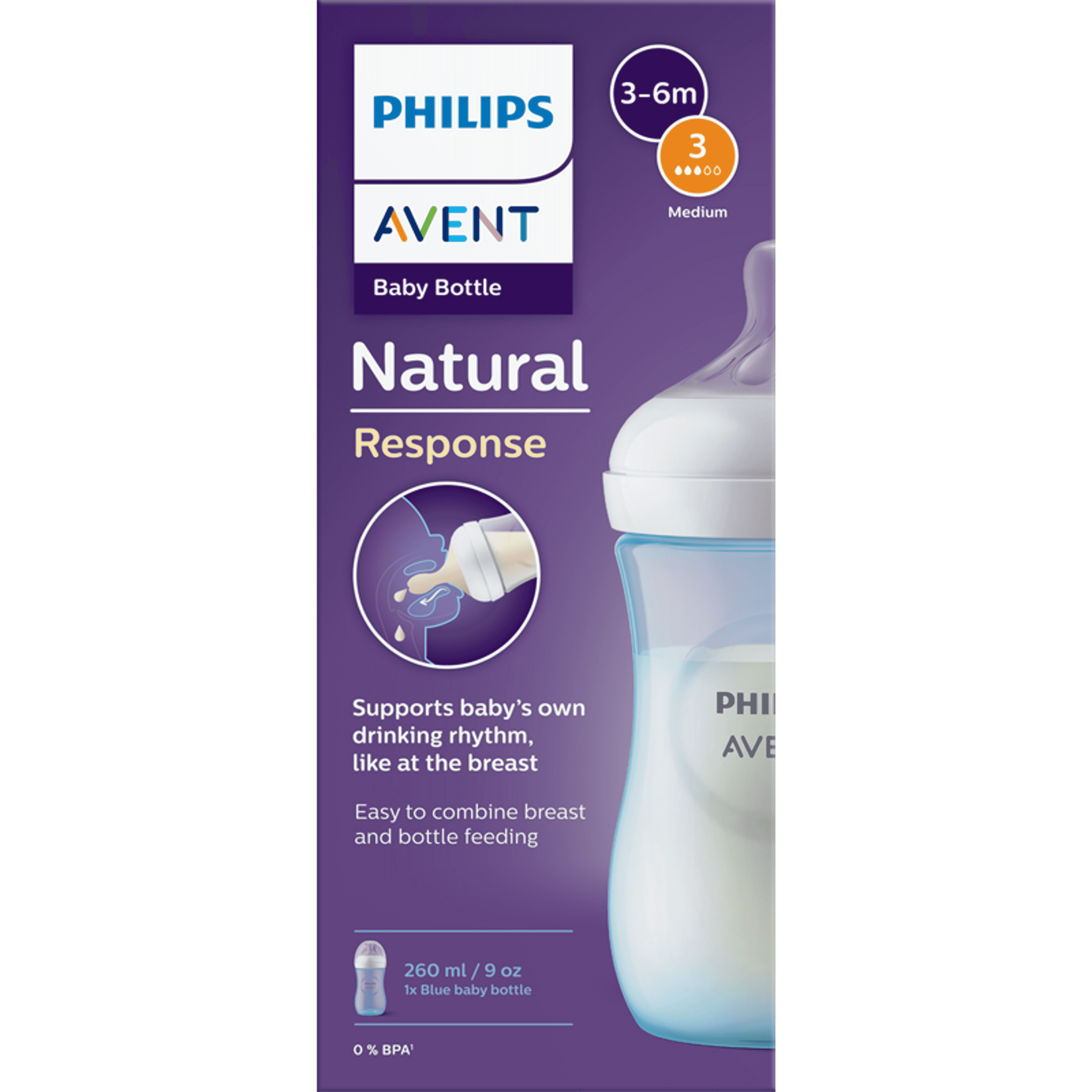 Philips Avent Natural Response cumisüveg 3 hónapos kortól 260 ml /kék - 1 db