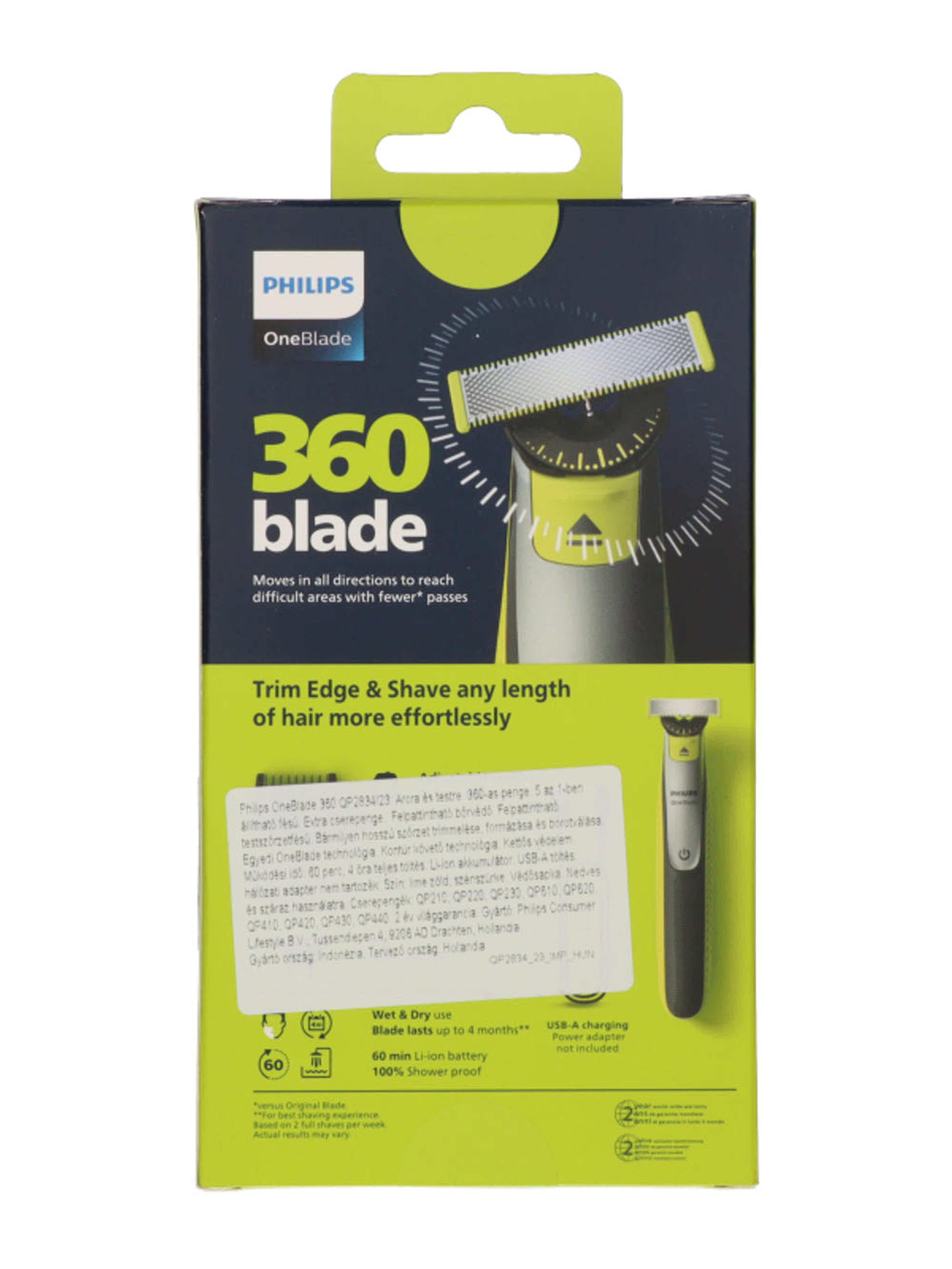 Az innovatív OneBlade 360 Face + Body hibrid borotvával bármilyen hosszúságú szőrzet minden eddiginél egyszerűbben trimmelhető, formázható és borotválható, még az érzékeny területeken is. Nincs szükség többé megannyi eszközre