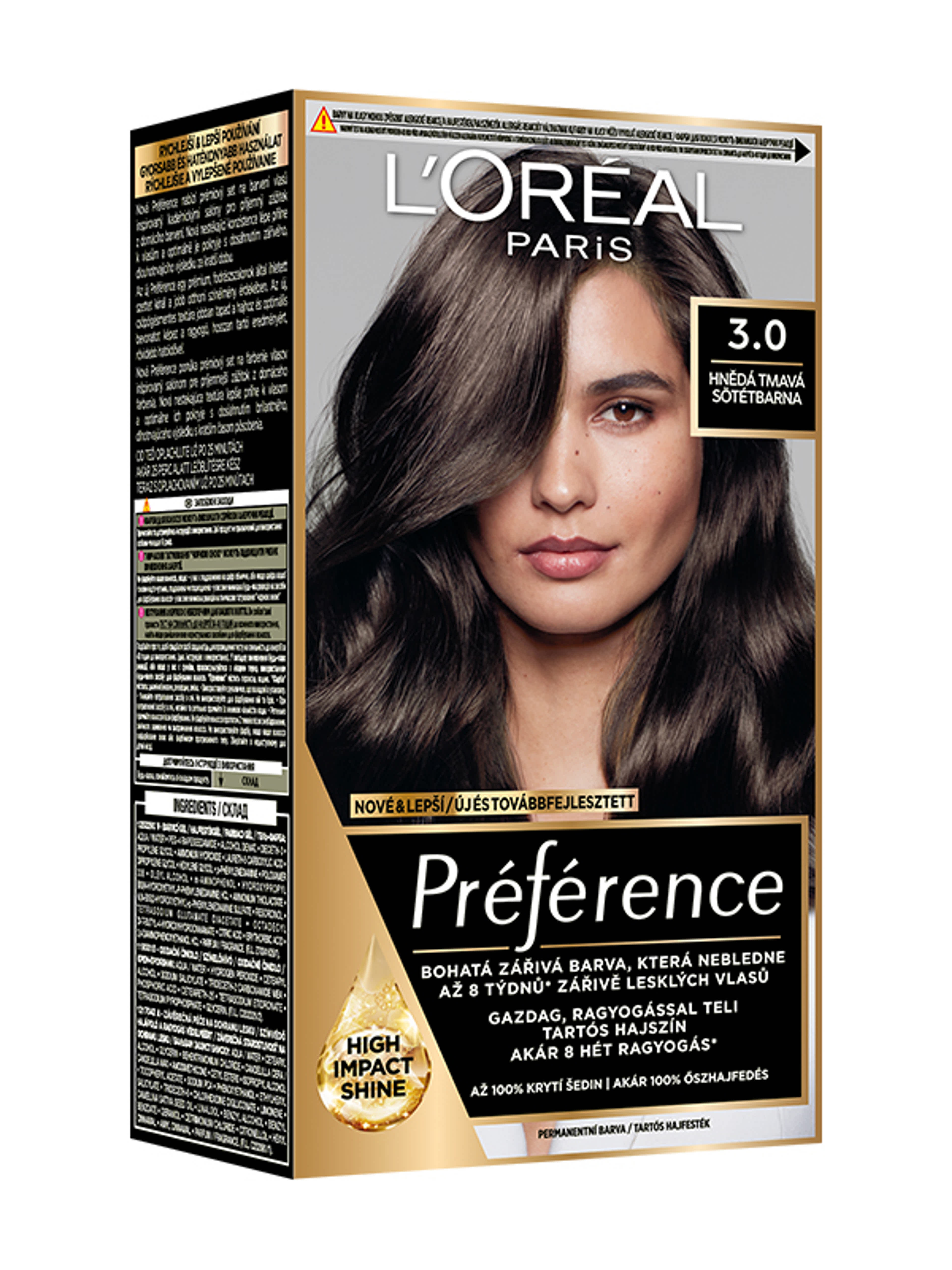 Hajfesték: aqua/water, trideceth-2 carboxamide MEA, propylene glycol, hexylene glycol, PEG-2 oleamine, polyglyceryl-4 oleyl ether, oleyl alcohol, alcohol denat., ammonium hydroxide, polyglyceryl-2 oleyl ether, oleic acid, sodium diethylaminopropyl cocoaspartamide, p-phenylenediamine, 2,4-diaminophenoxyethanol HCl, m-aminophenol, hydroxypropyl bis(n-hydroxyethyl-p-phenylenediamine) HCL, hydroxybenzomorpholine, eugenol, ammonium acetate, ammonium thiolactate, n,n-bis(2-hydroxyethyl)-p-phenylenediamine sulfate, linalool, alpha-isomethyl ionone, resorcinol, EDTA, citronellol, erythorbic acid, parfum/fragrance, Színelőhívó krém: aqua/water, hydrogen peroxide, cetearyl alcohol, sodium salicylate, trideceth-2 carboxamide MEA, phosphoric acid, ceteareth-25, tetrasodium etidronate, tetrasodium pyrophosphate, glycerin, Színvédő hajápoló: aqua/water, cetearyl alcohol, glycerin, behentrimonium chloride, candelilla cera/candelilla wax, amodimethicone, cetyl esters, isopropyl alcohol, tocopheryl acetate, alcohol denat., lecithin, tocopherol, sodium PCA, oleth-10, PPG-5-ceteth-20, ethylhexyl methoxycinnamate, ethylhexyl salicylate, trideceth-6, chlorhexidine dihydrochloride, limonene, camelina sativa oil/camelina sativa seed oil, linalool, benzyl alcohol, benzyl benzoate, phosphoric acid, geraniol, disodium cocoamphodipropionate, cetrimonium chloride, butylphenyl methylpropional, citronellol, hexyl cinnamal, amyl cinnamal, parfum/fragrance