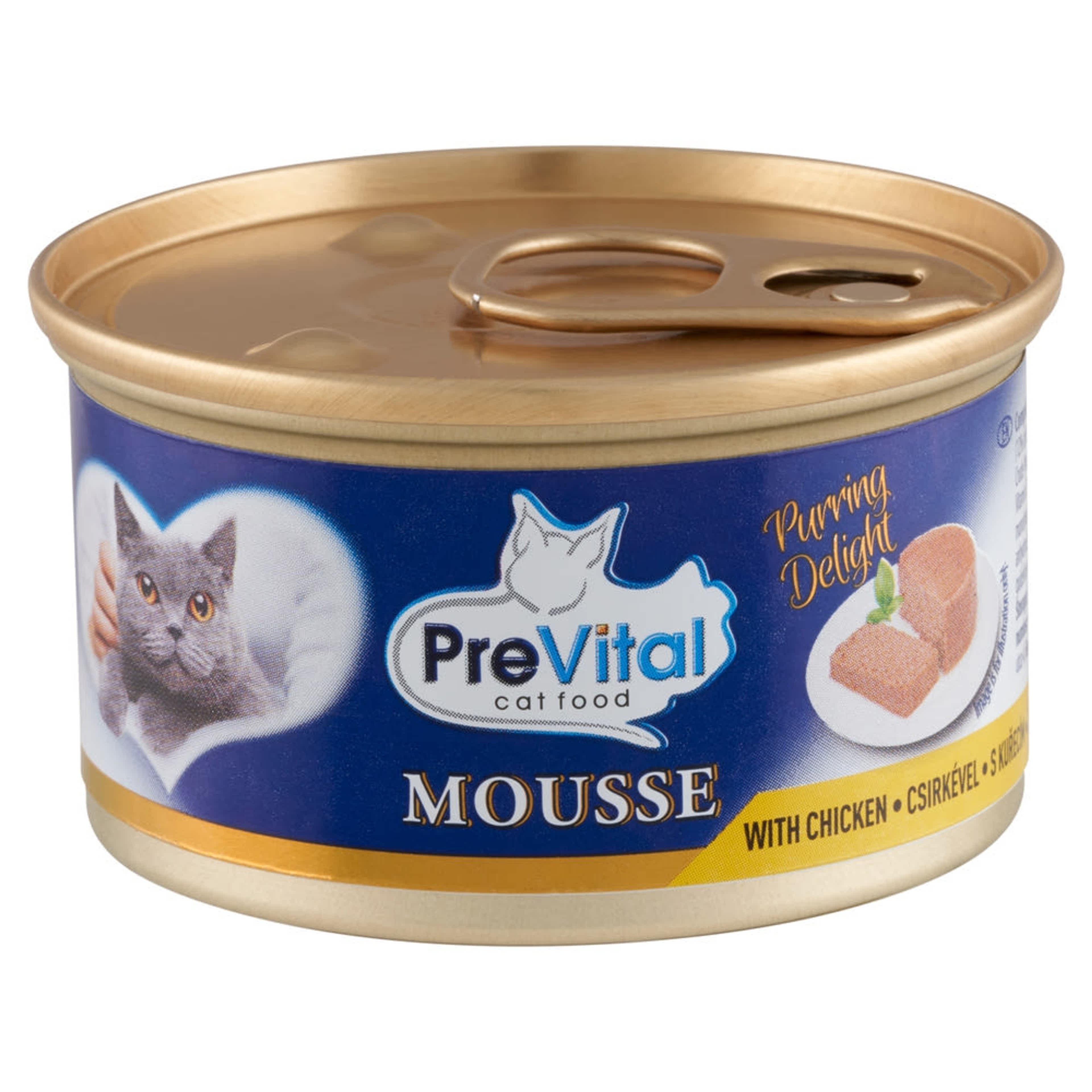 PreVital Mousse nedves macskaeledel, macskatáp felnőtt macskáknak csirkével pástétom konzerv - 85 g