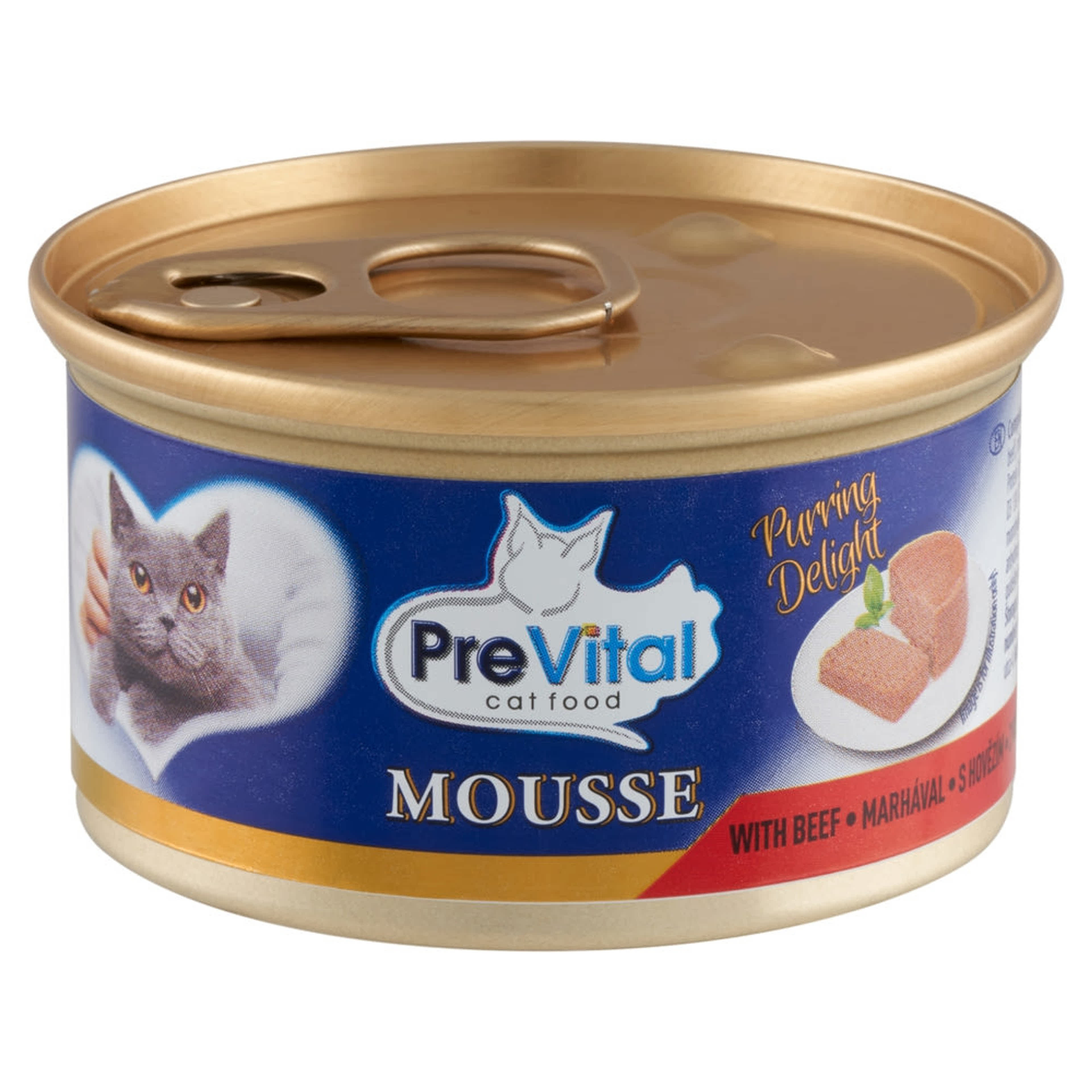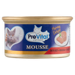 PreVital Mousse nedves macskaeledel, macskatáp felnőtt macskáknak marhával pástétom konzerv - 85 g