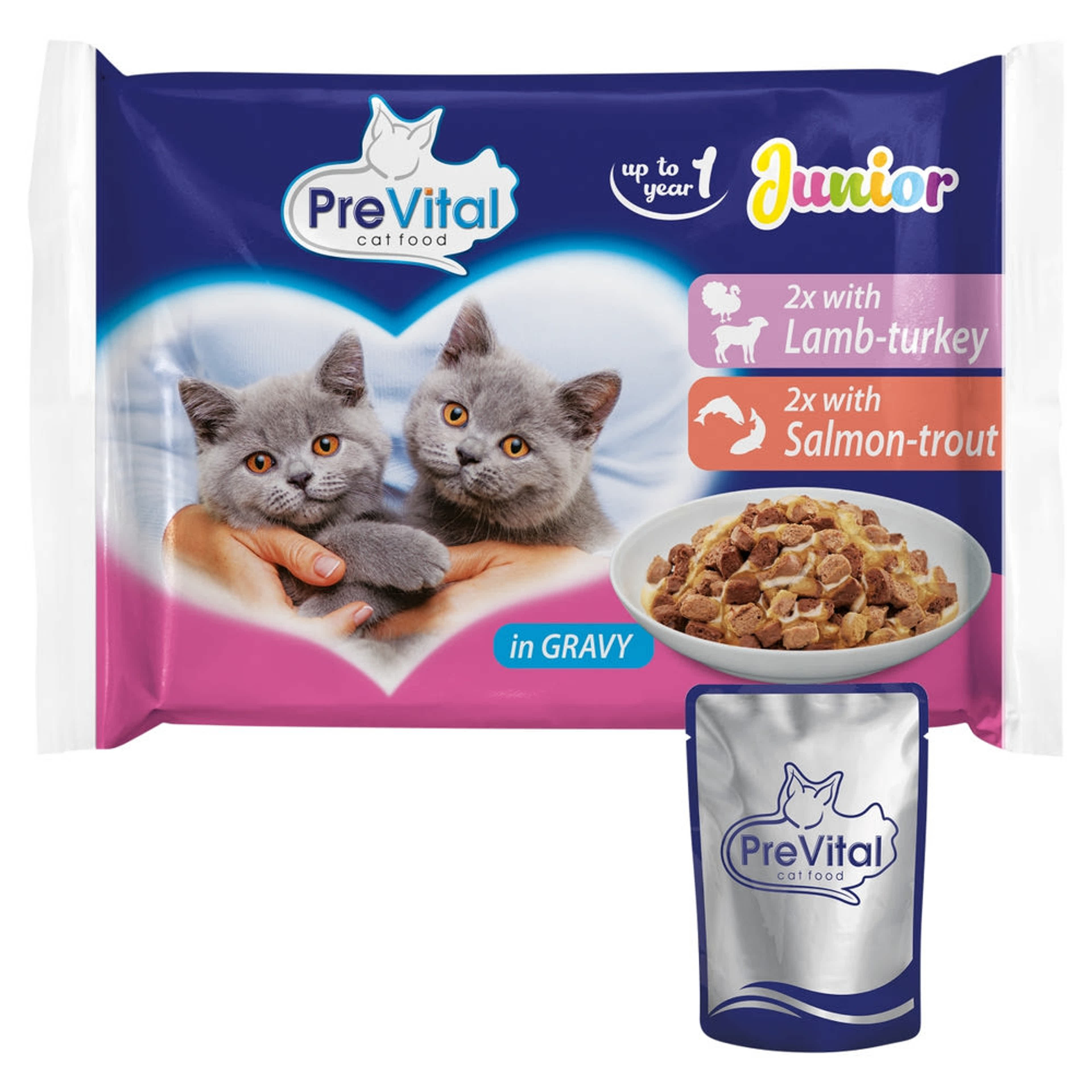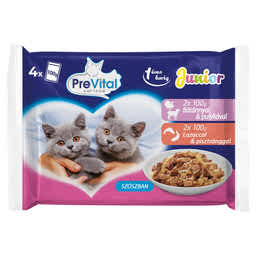 PreVital Junior nedves macskaeledel kölyök macskáknak szószban alutasakos macskatáp (4x100g) - 400 g