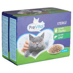 PreVital nedves macskaeledel steril macskáknak vegyes ízben szószban alutasakos macskatáp 12x100g - 1200 g