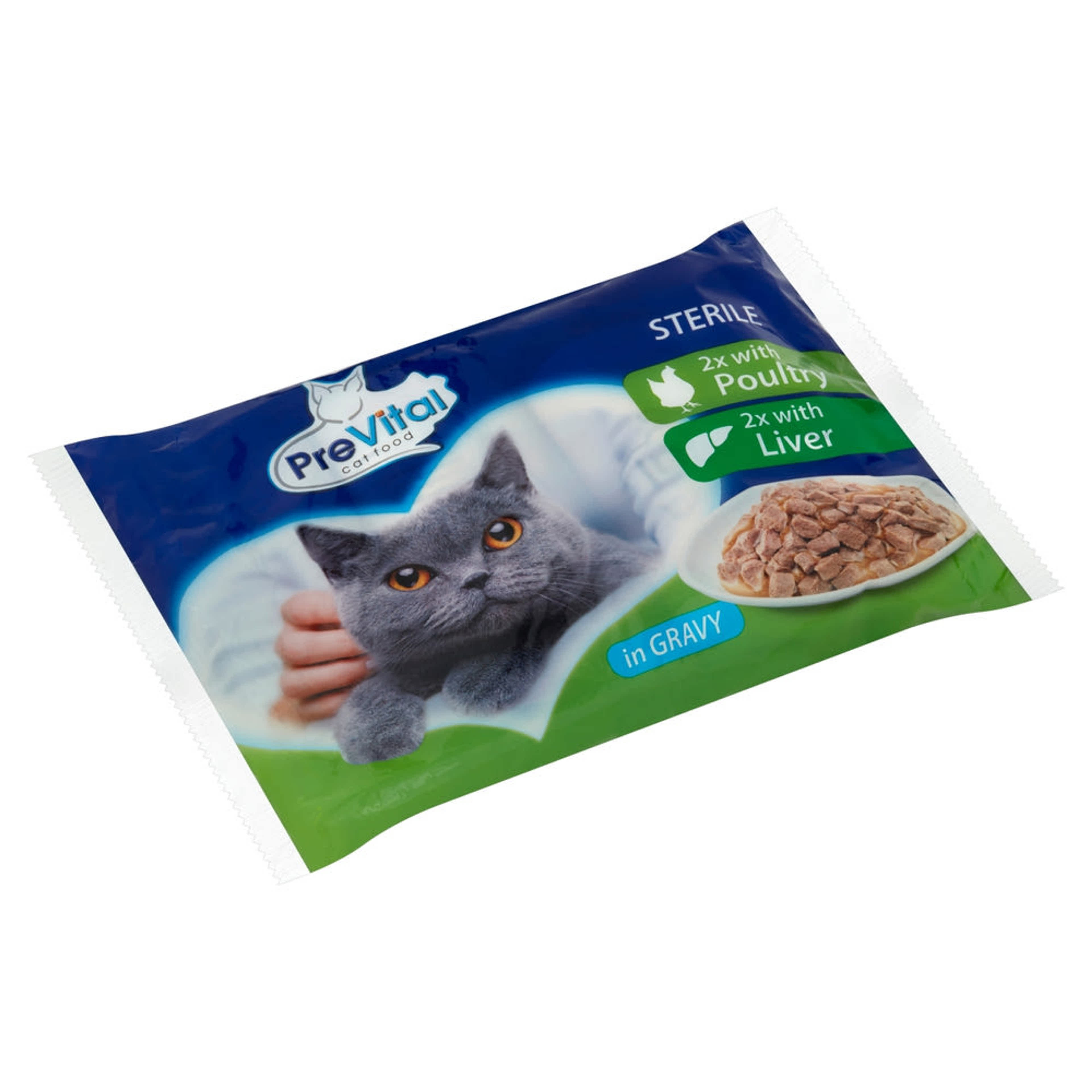 PreVital nedves macskaeledel steril macskáknak szószban baromfival és májjal alutasakos macskatáp (4x100g) - 400 g