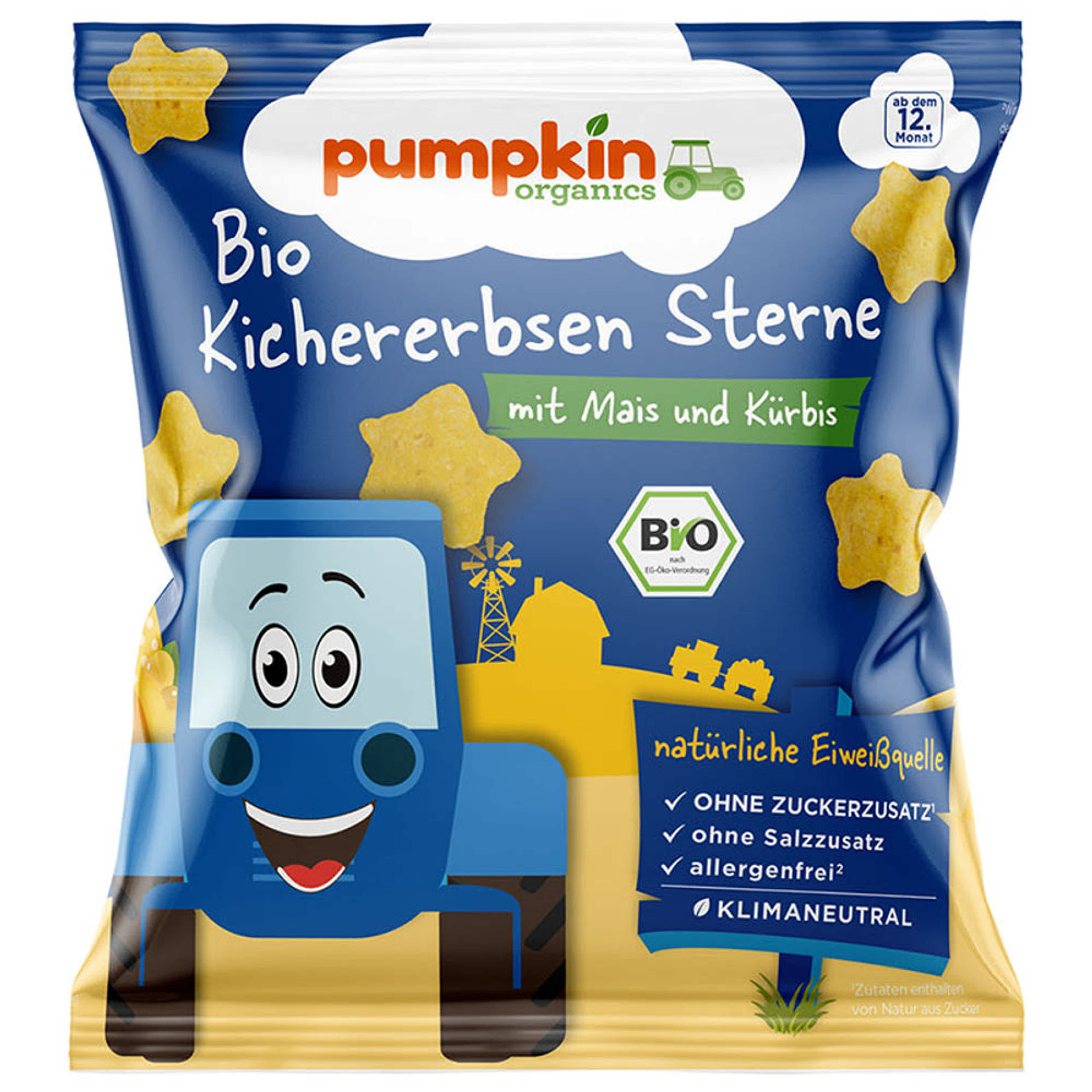 Pumpkin Bio Organics csicseriborsó csillagok kukoricával és sütőtökkel 12 hónapos kortól - 20 g