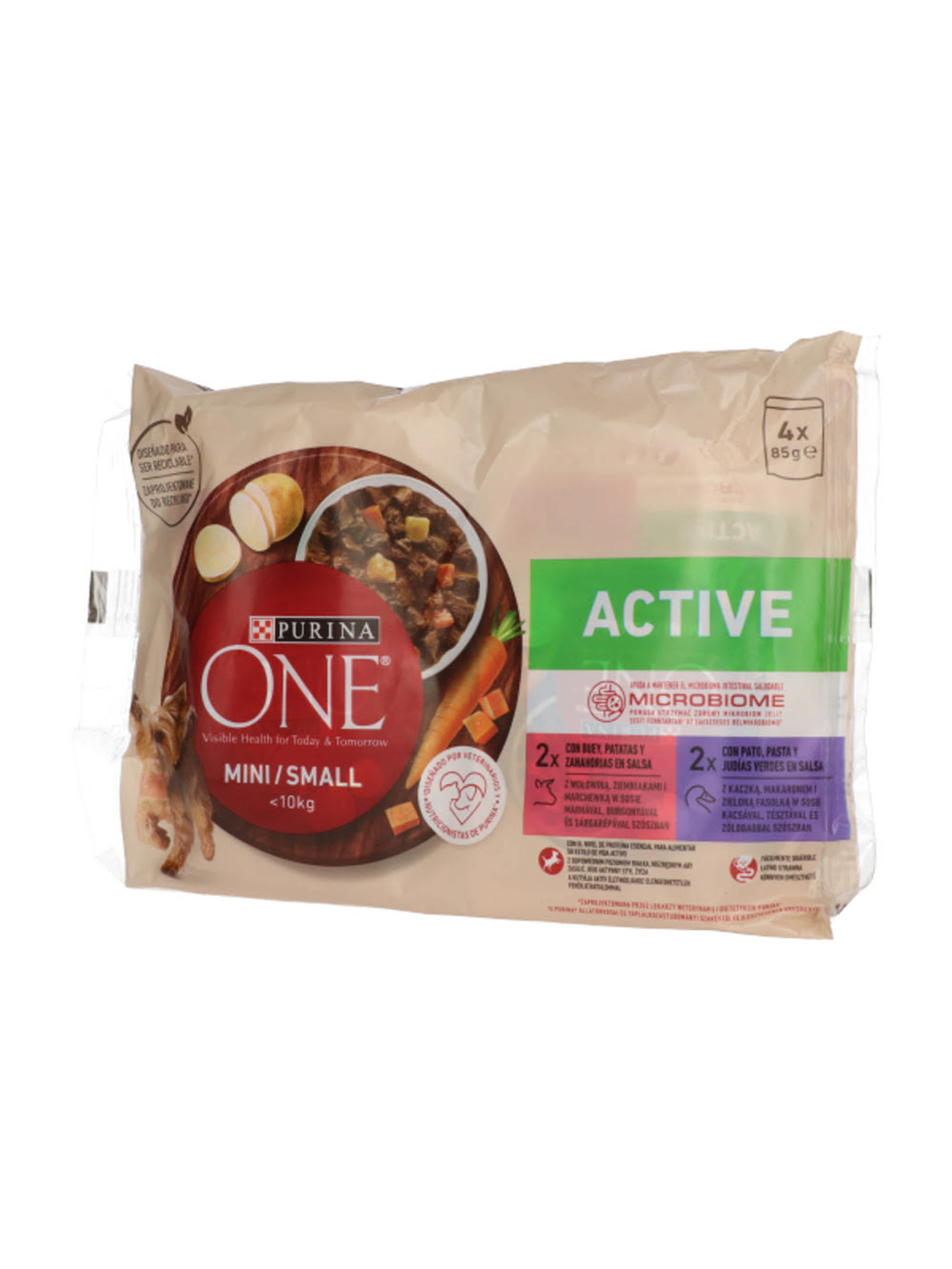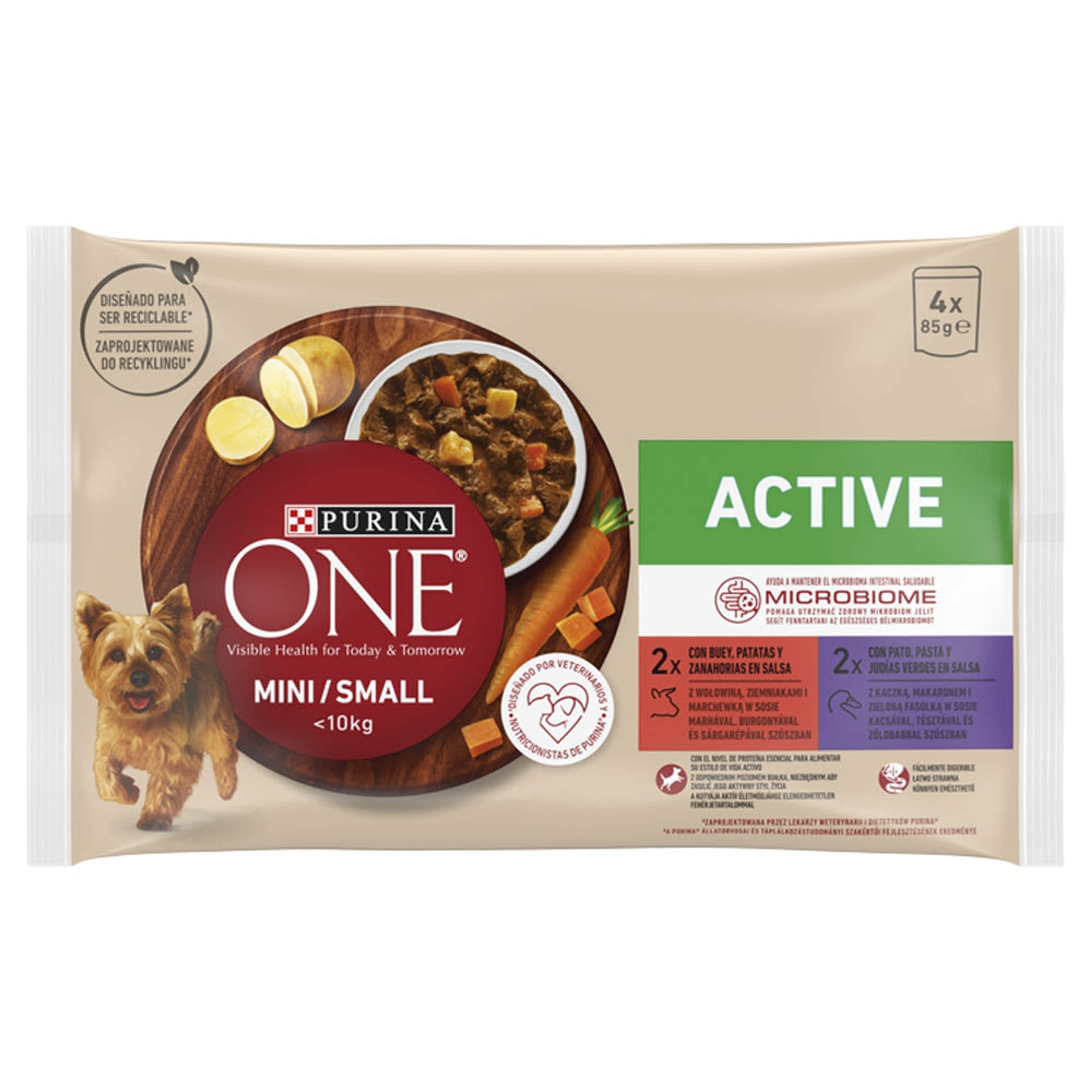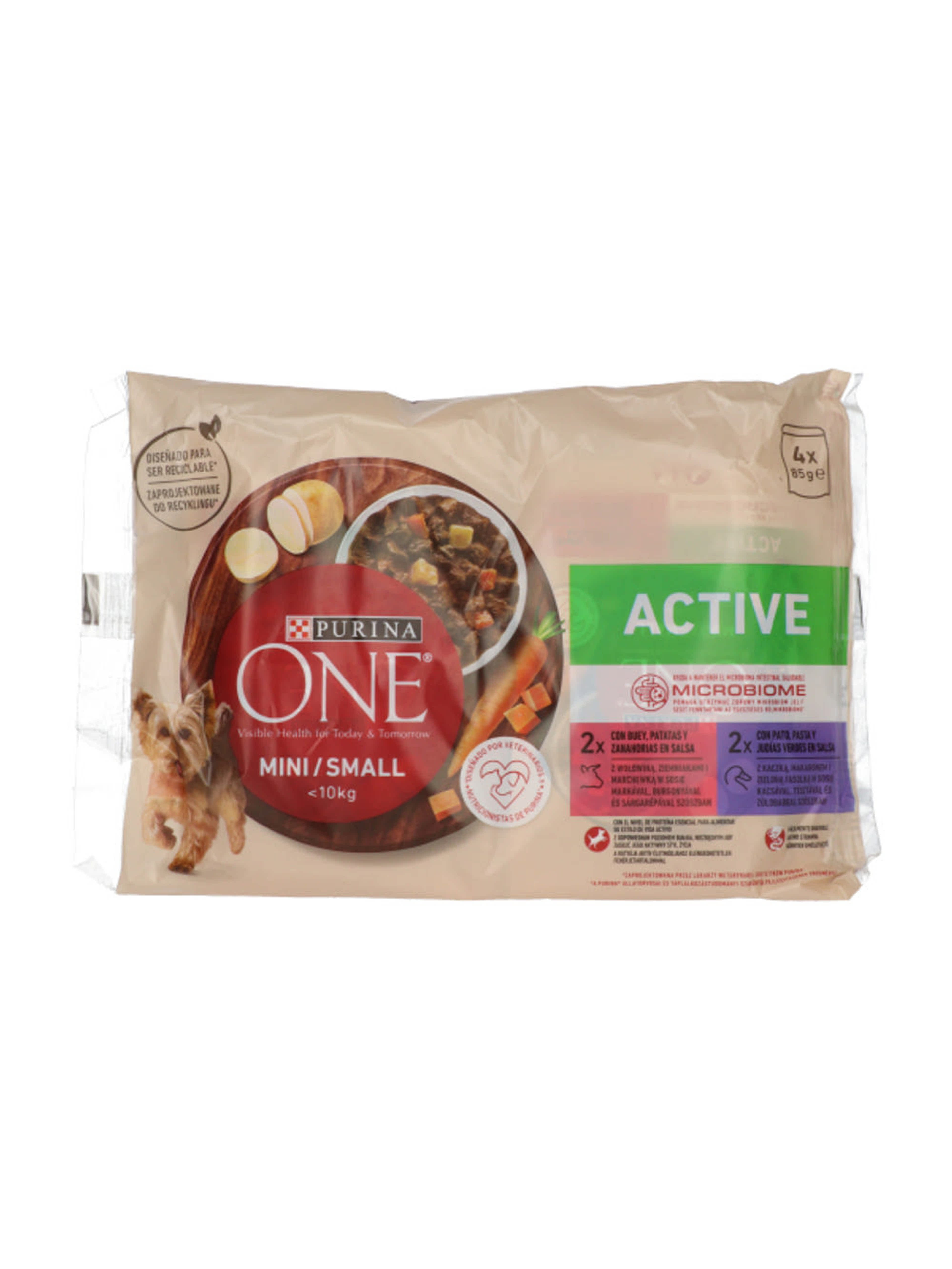 Purina One Mini Active állateledel kutyáknak marhával és kacsával 4x85g - 340 g