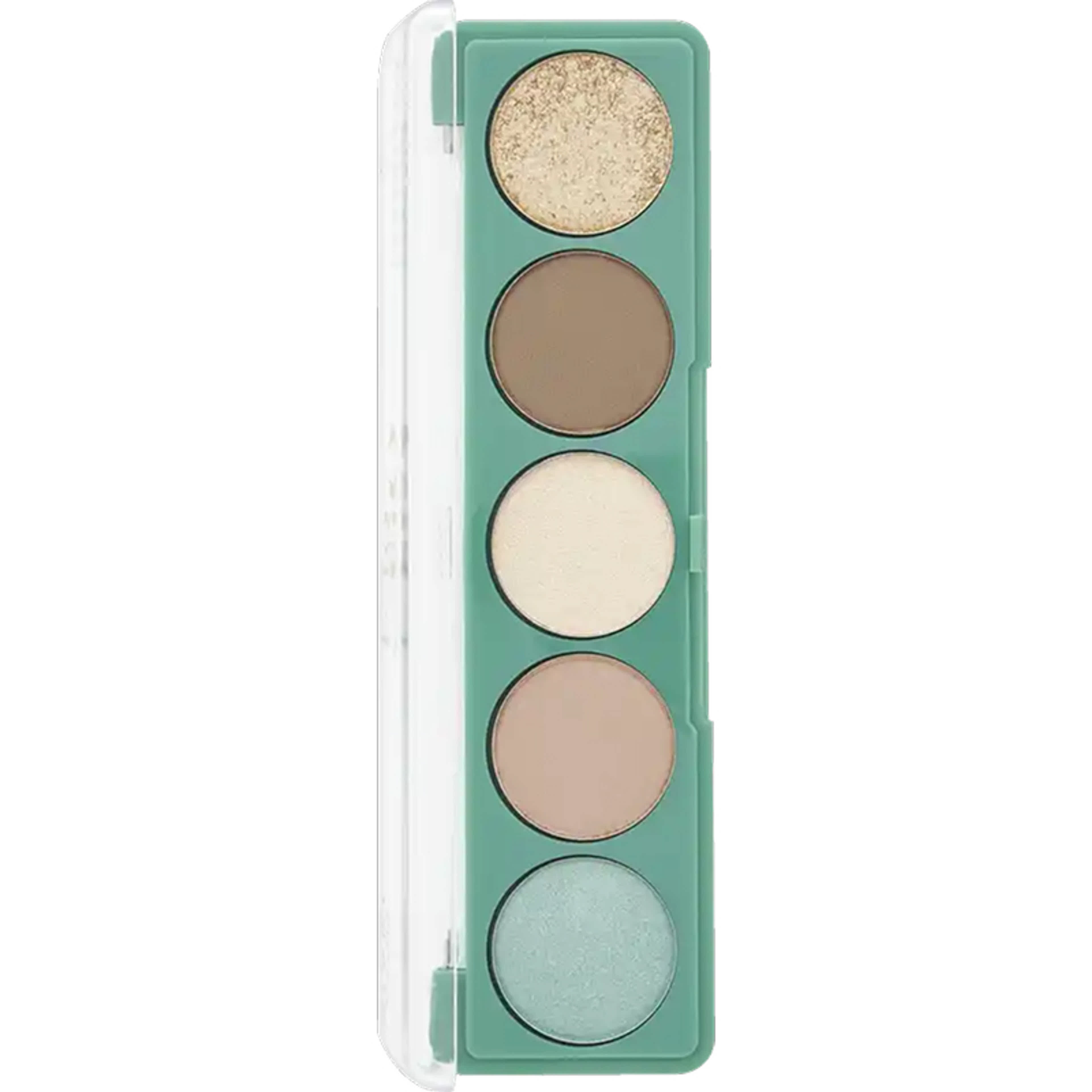 Talcum (talkum), Synthetic Fluorphlogopite (szintetikus csillám), Mica (csillám), Ethylhexyl Stearate (zsírsavészter), Bis-Diglyceryl Polyacyladipate-1 (bőrpuhító), Caprylic/Capric Triglyceride (kókuszolajból származó bőrpuhító), Magnesium Stearate (mágnezium-sztearát – selymes állagért), Caprylyl Glycol (nedvesítő), Phenoxyethanol (tartósítószer), Tin Oxide (ásványi fényfokozó), Hexylene Glycol (nedvesítő), Tocopheryl Acetate (E-vitamin-acetát – antioxidáns), valamint színezékek: CI 77891 (titán-dioxid), CI 77289 (krómoxid-zöld), CI 77491 / CI 77492 / CI 77499 (vas-oxid vörös/sárga/fekete), CI 77510 (ultramarinkék), CI 42090 (kék 1).