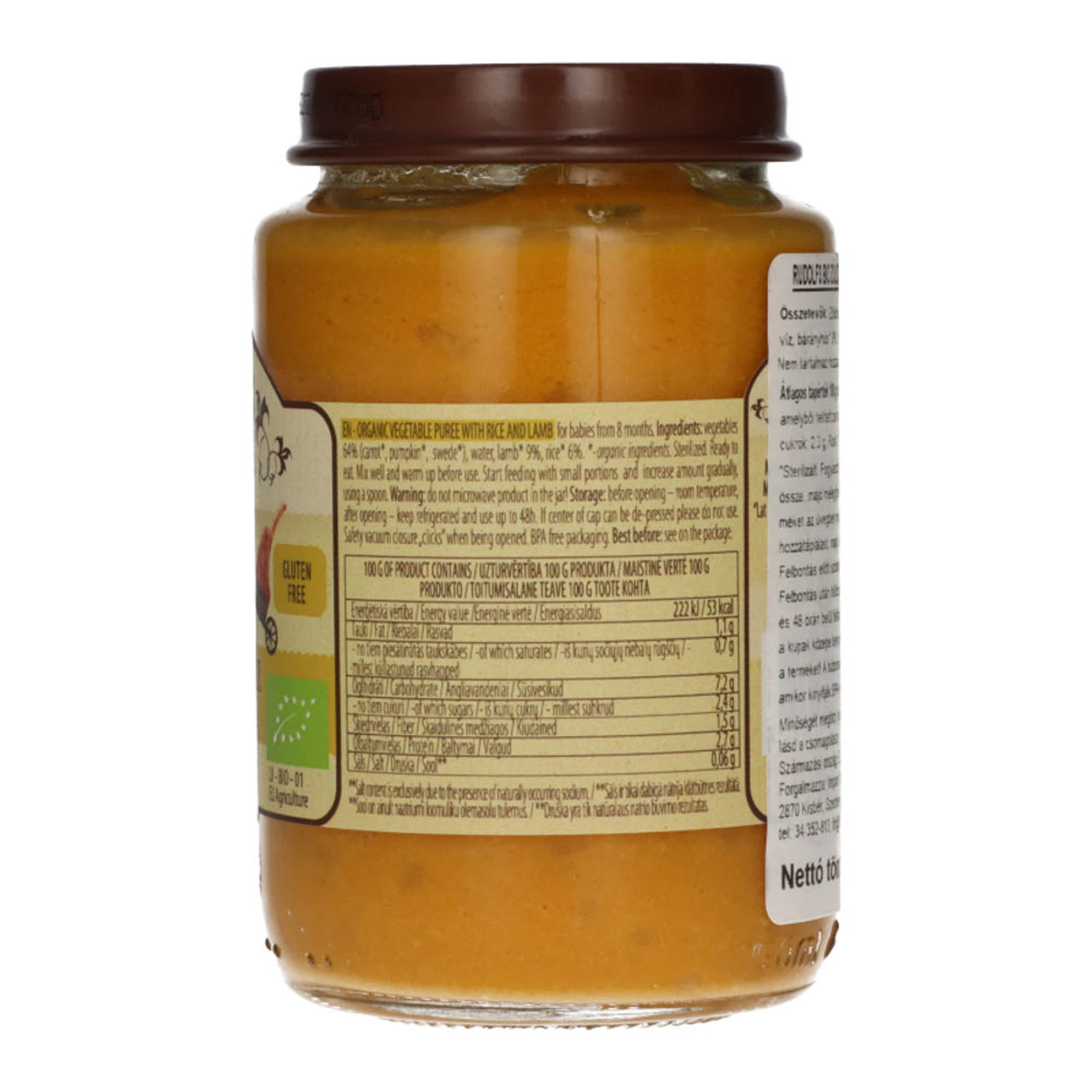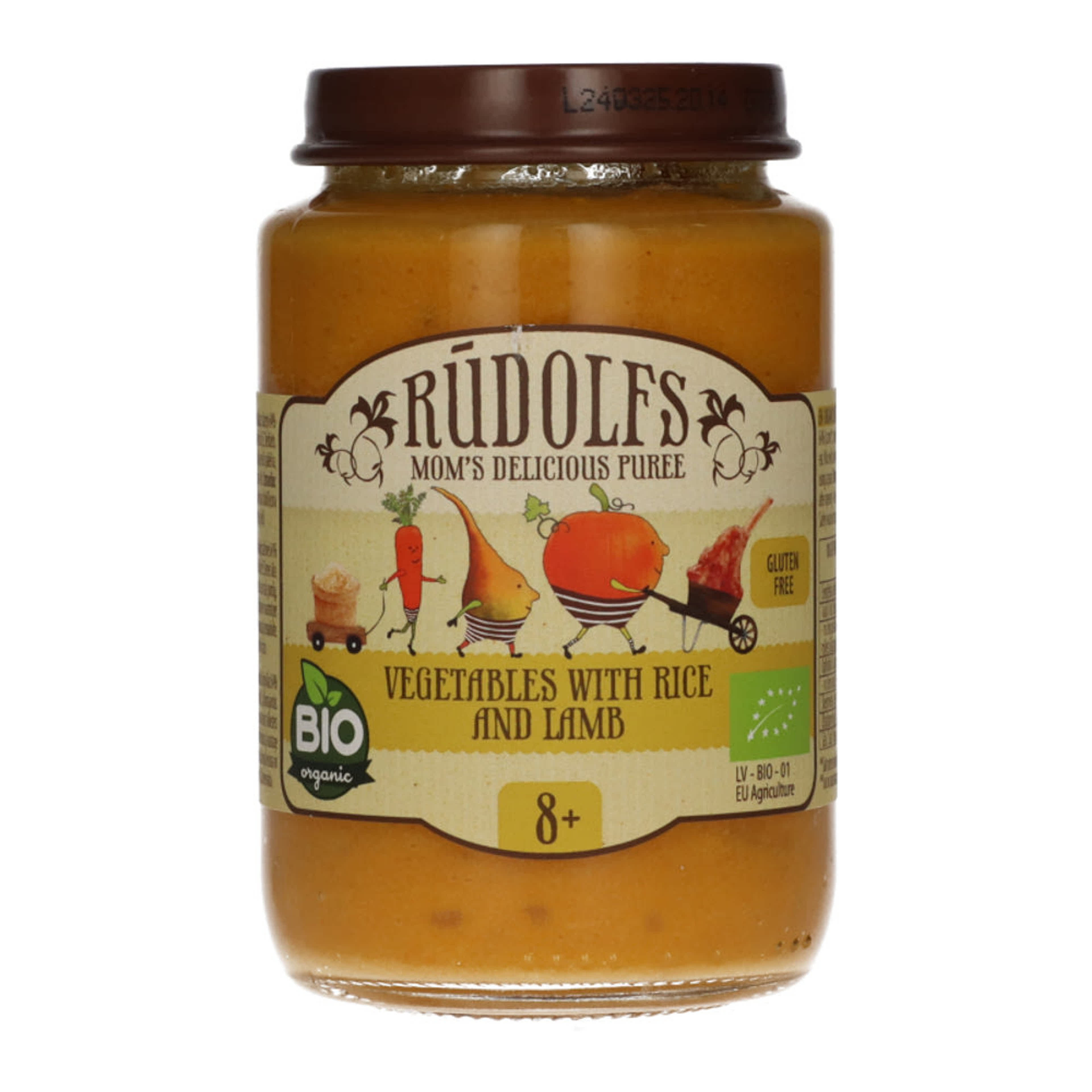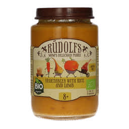 Rudolfs Bio bébiétel zöldségpüré rizzsel és bárányhússal 8 hónapos kortól - 190 g