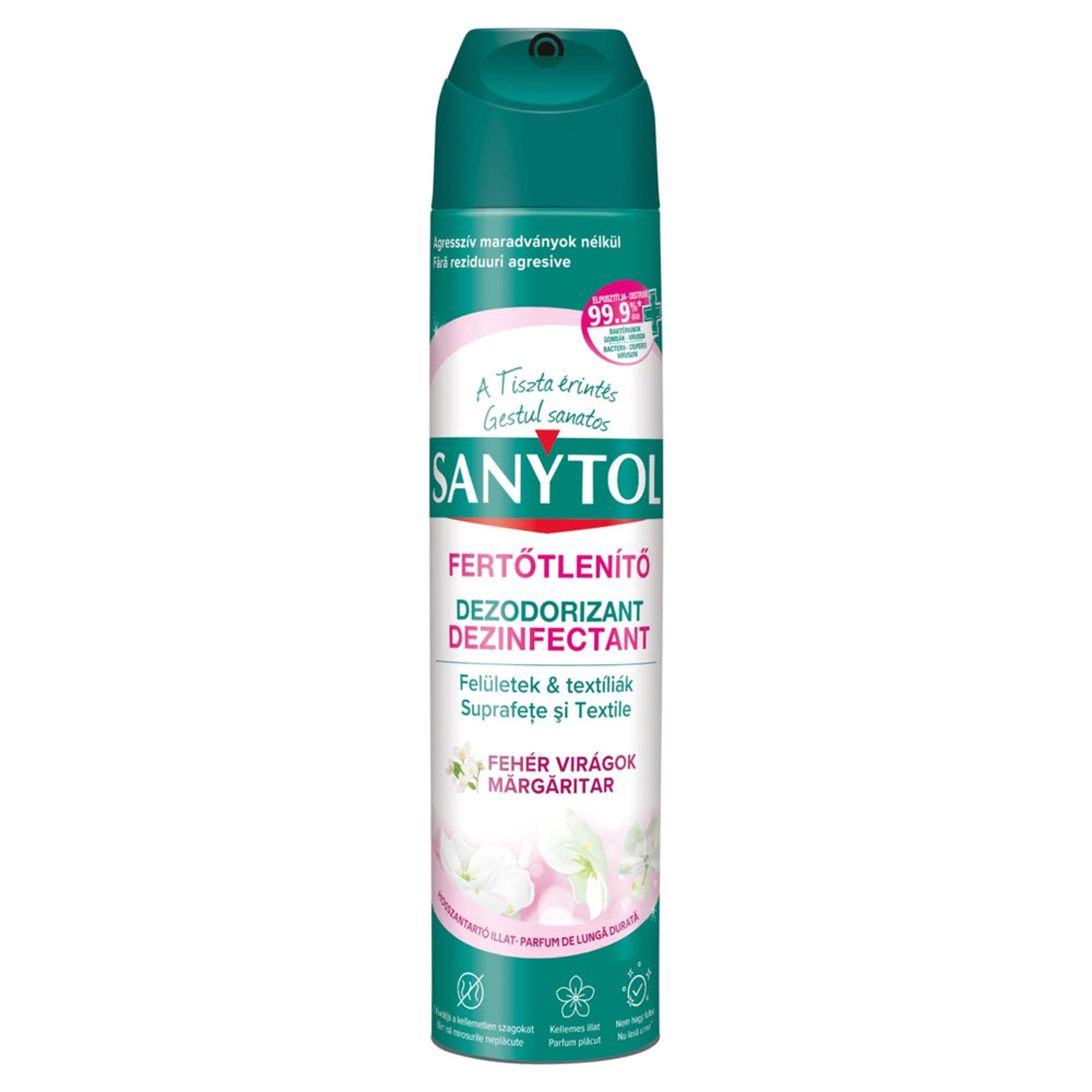 A Sanytol, a klórmentes fertőtlenítés szakértője kifejlesztette fertőtlenítő légfrissítő aeroszolját, mely biztosítja Önnek a tökéletes higiéniát és kellemes illatot varázsol környezetébe. Egyedülálló formulája semlegesíti a rossz szagok forrását, és elpusztítja a felületeken és textíliákon található baktériumok, gombák és vírusok 99,9%-át.