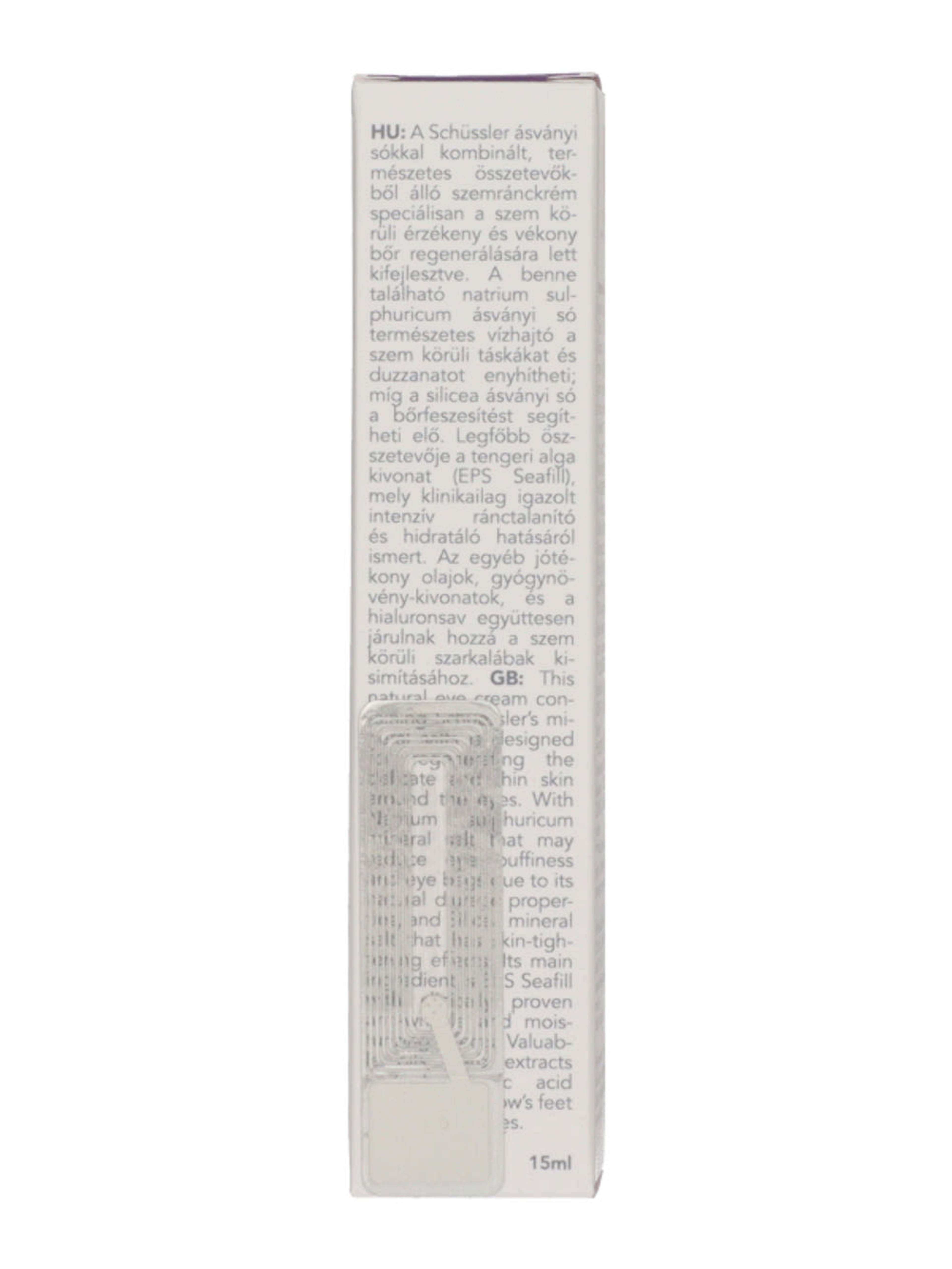 A Schüssler Age Protection szemránckrém kifejezetten a szemkörnyék területre kifejlesztett natúr krém. Különleges, Schüssler ásványi sókkal ( Natrium sulfuricum / NR.10 és Silicea / NR.11) segíthet megszüntetni a reggeli, szem körül kialakuló puffadást, karikákat, valamint a szemkörnyéki szarkalábakat. Könnyű állaga miatt gyorsan beszívódik, és friss érzést biztosít a bőrnek. Élvezd az organikus hatóanyagok és a Schüssler ásványi sók jótékony hatásait minden nap!