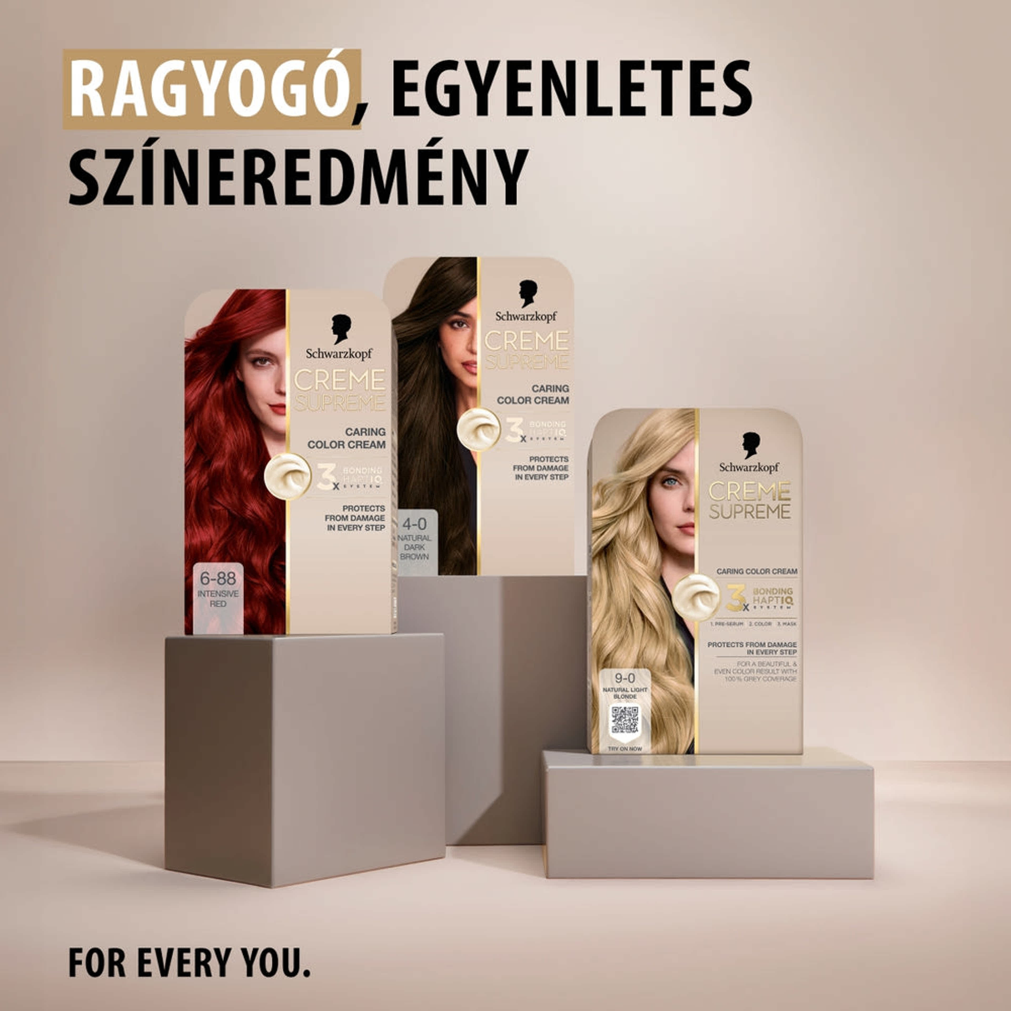 Bonding festékkrém: Aqua (Water, Eau), Cetearyl Alcohol, Ammonium Hydroxide, Coconut Alcohol, Sodium Laureth-6 Carboxylate, Sodium Myreth Sulfate, 1-Hydroxyethyl 4,5-Diamino Pyrazole Sulfate, Potassium Hydroxide, Succinic Acid, Bis-Diisopropanolamino-PG-Propyl Dimethicone/Bis-Isobutyl PEG-14 Copolymer, Acrylamidopropyltrimonium Chloride/Acrylates Copolymer, Coco-Glucoside, Paraffinum Liquidum (Mineral Oil, Huile Minérale), Glyceryl Oleate, Ammonium Sulfate, Arginine, Lysine HCl, Ceteareth-12, Ceteareth-20, Parfum (Fragrance), m-Aminophenol, Sodium Sulfite, 4-Amino-2-Hydroxytoluene, Sodium Silicate, 4-Amino-m-Cresol, Etidronic Acid, Ascorbic Acid, Sodium Chloride, Butyloctanol, Citric Acid, Polysorbate 20, Linalool, Phenoxyethanol, Benzyl Salicylate, Lactic Acid, Citronellol, Geraniol, Limonene, Ethyl 2,2-Dimethylhydrocinnamal, Sodium Benzoate, Benzyl Alcohol, Methylparaben, Ethylparaben