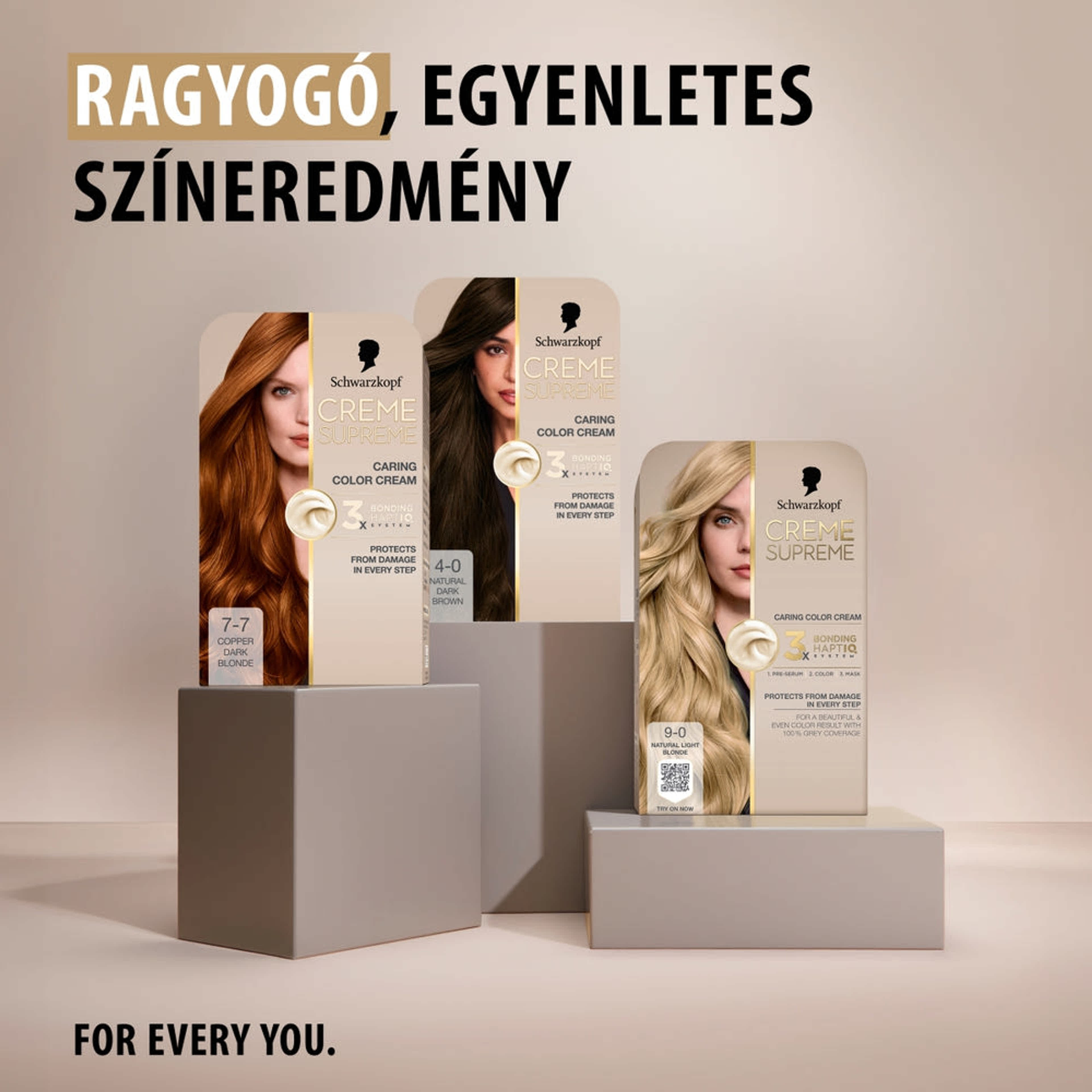 Fedezd fel a Creme Supreme ápoló hajfestékeit 3-szoros bonding HAPTIQ rendszerrel, a hajfestés közbeni ápolásért, védelemért és a gyönyörű & egyenletes színeredményért.