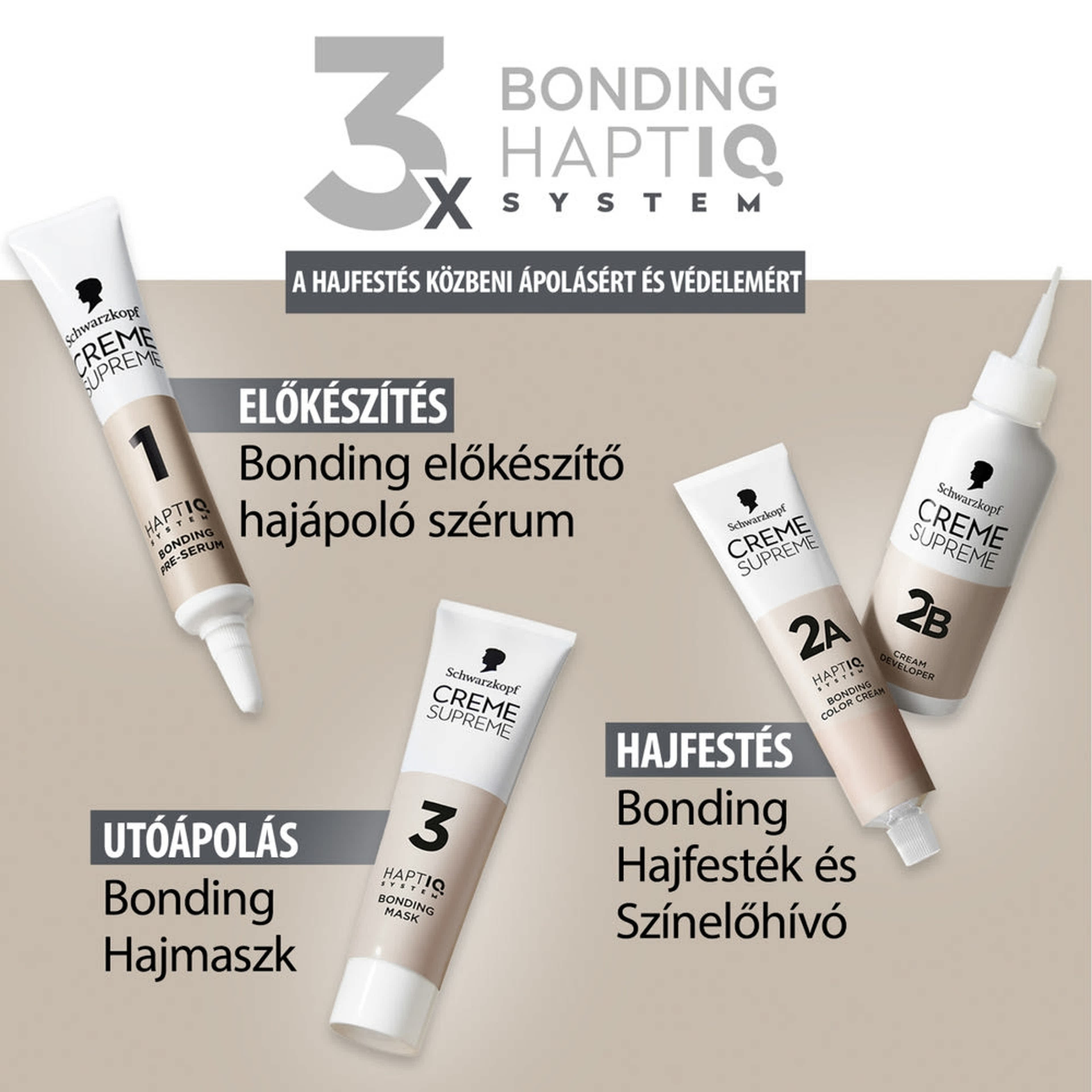 Fedezd fel a Creme Supreme ápoló hajfestékeit 3-szoros bonding HAPTIQ rendszerrel, a hajfestés közbeni ápolásért, védelemért és a gyönyörű & egyenletes színeredményért.