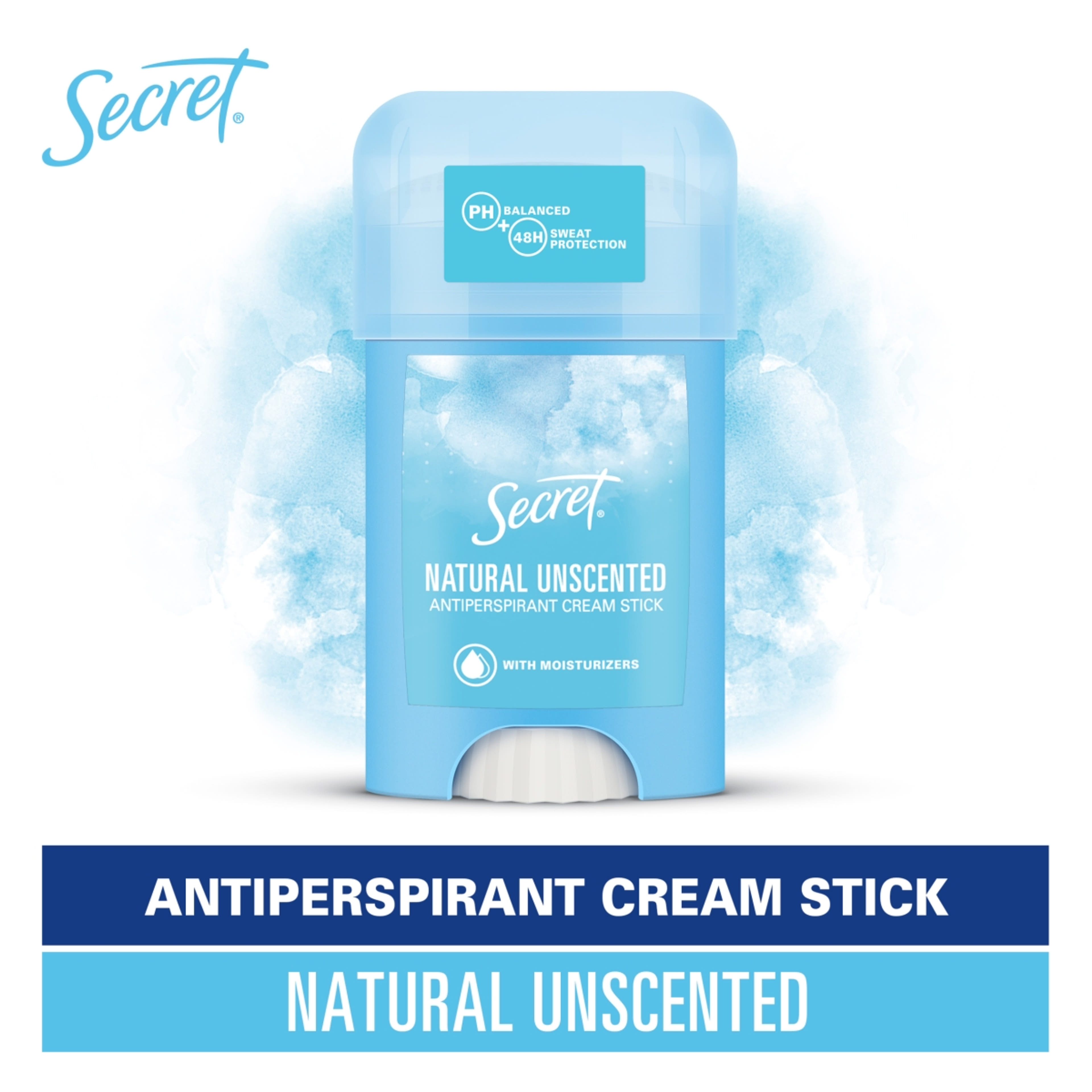 Feltartóztathatatlan frissesség egész napon át a Secret Natural Illatmentes izzadásgátló krémstift gazdag és megnyugtató illatával