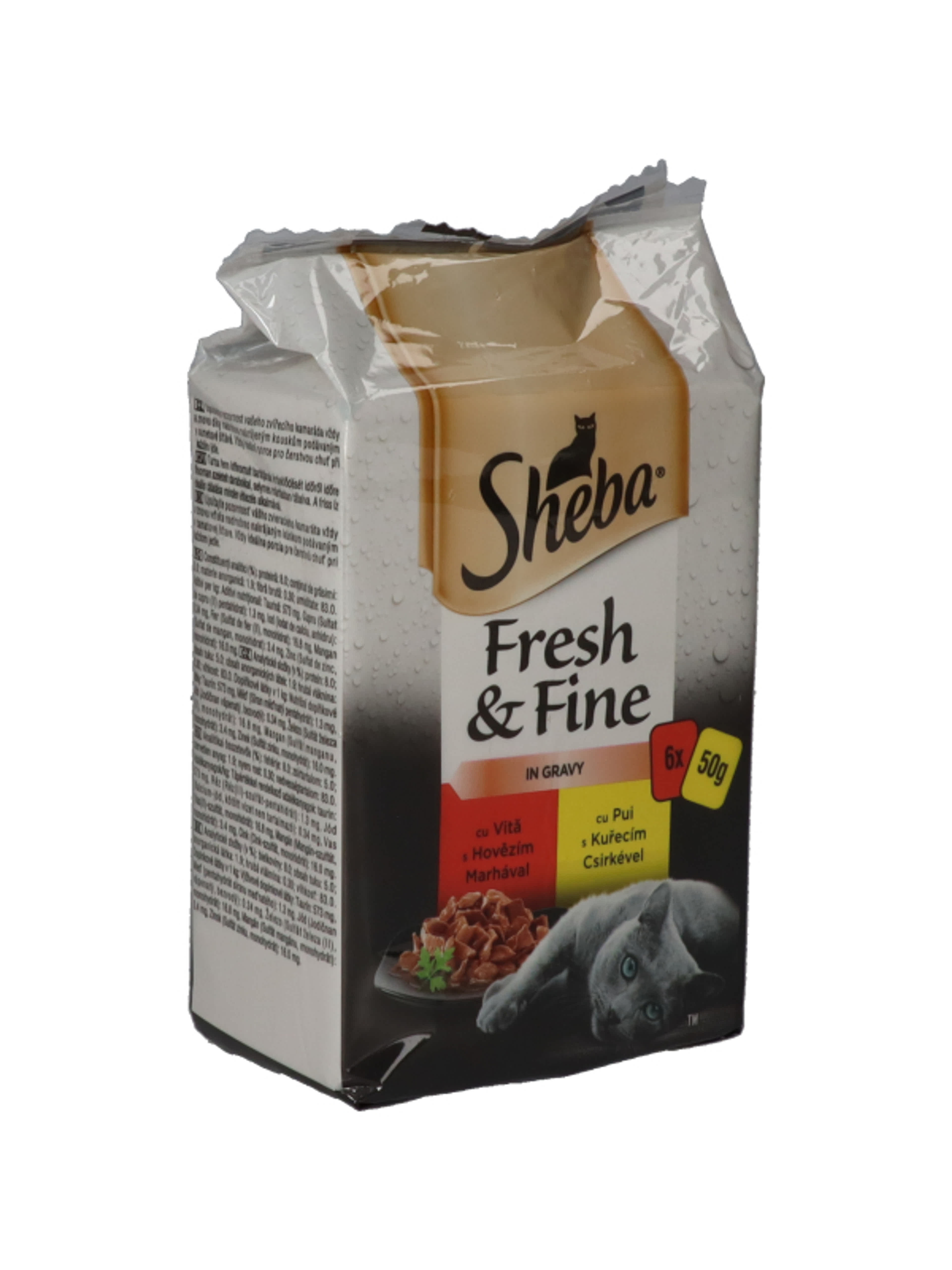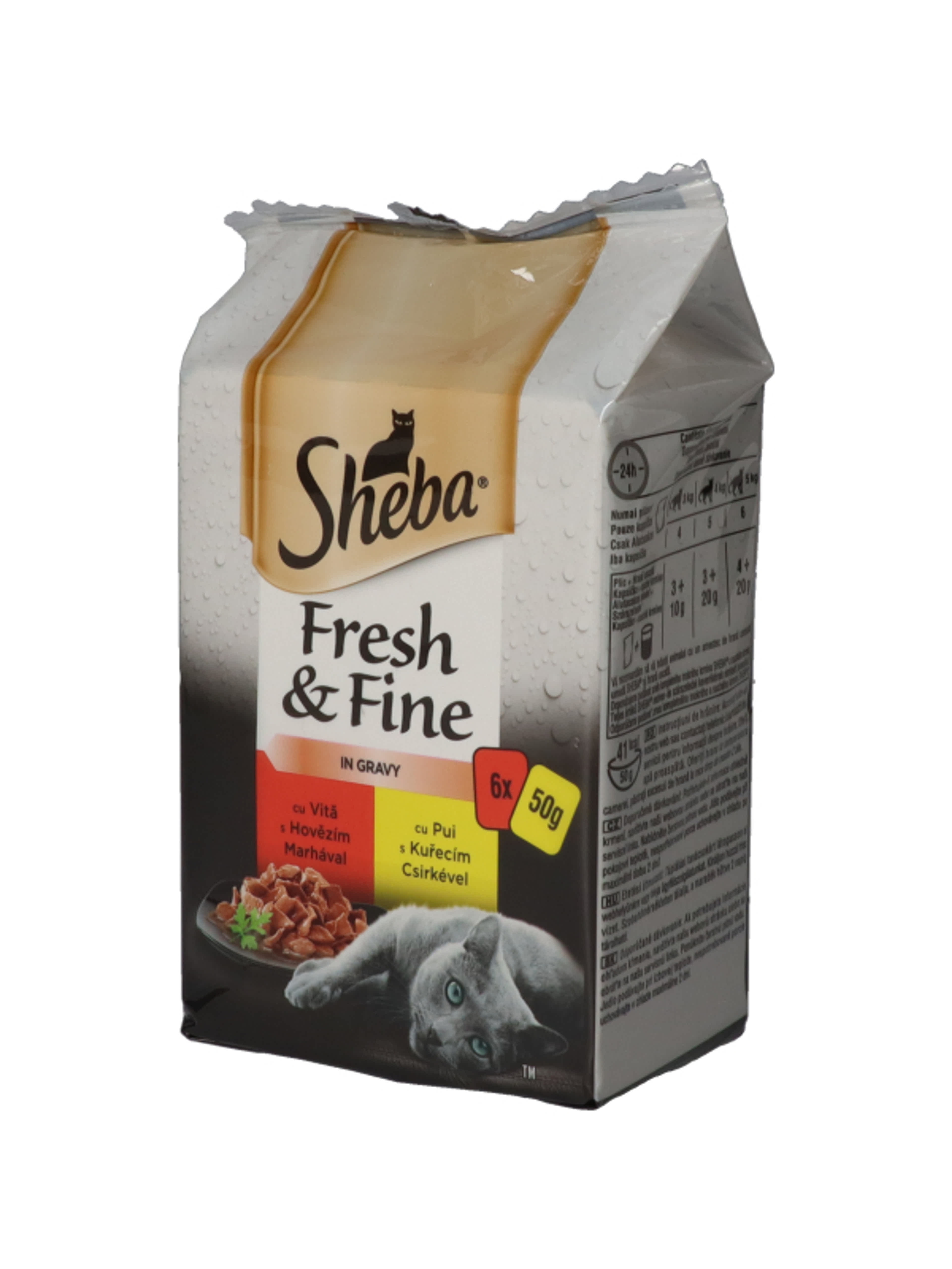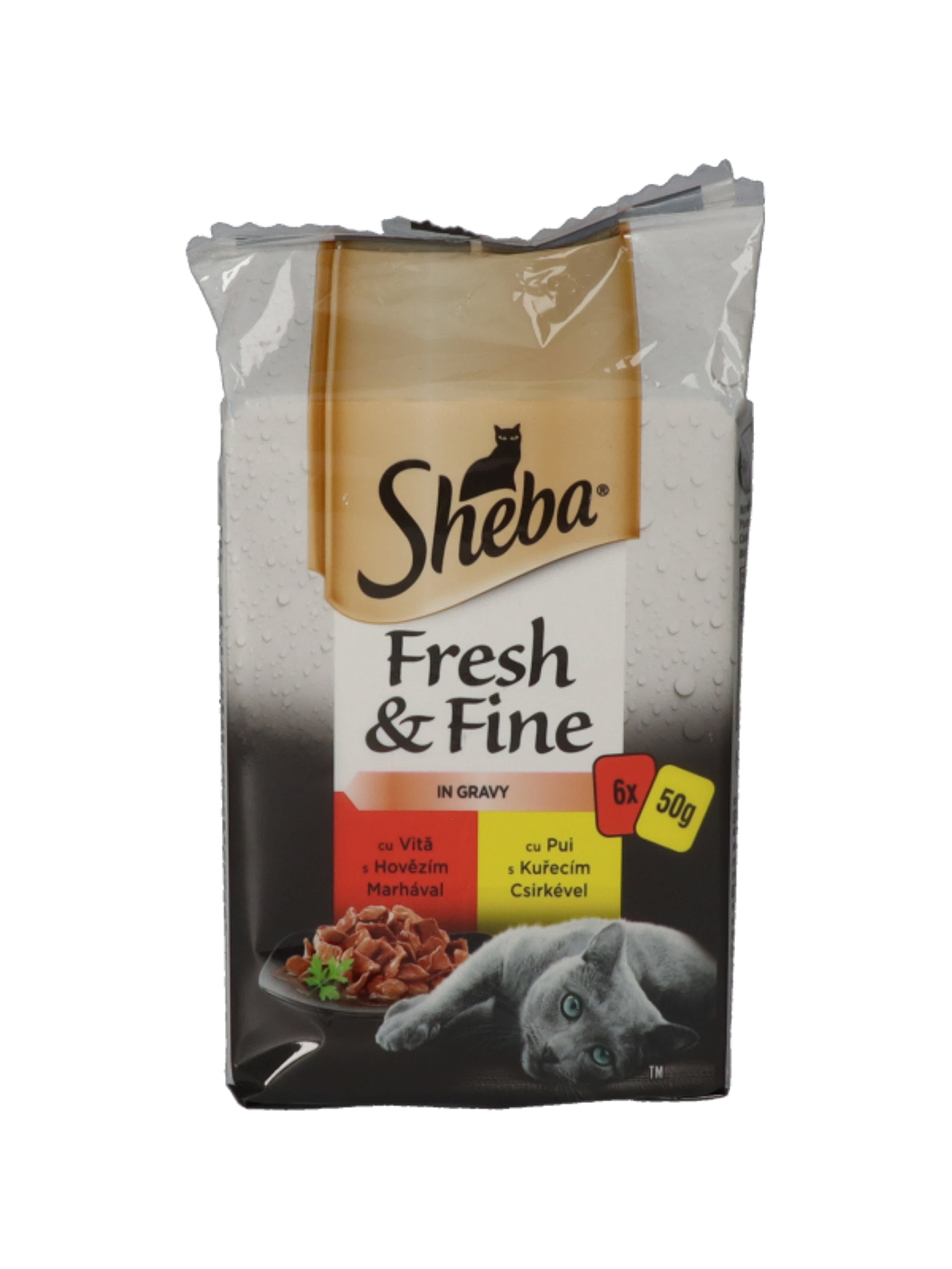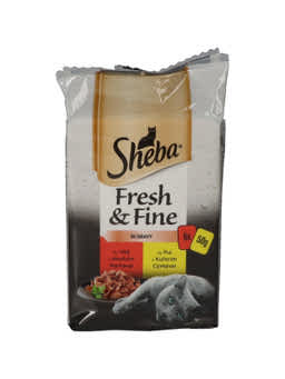 Sheba Fresh & Fine Excluzív felnőtt teljes értékű alutasak macskáknak, húsos válogatás (6x50 g) - 300 g