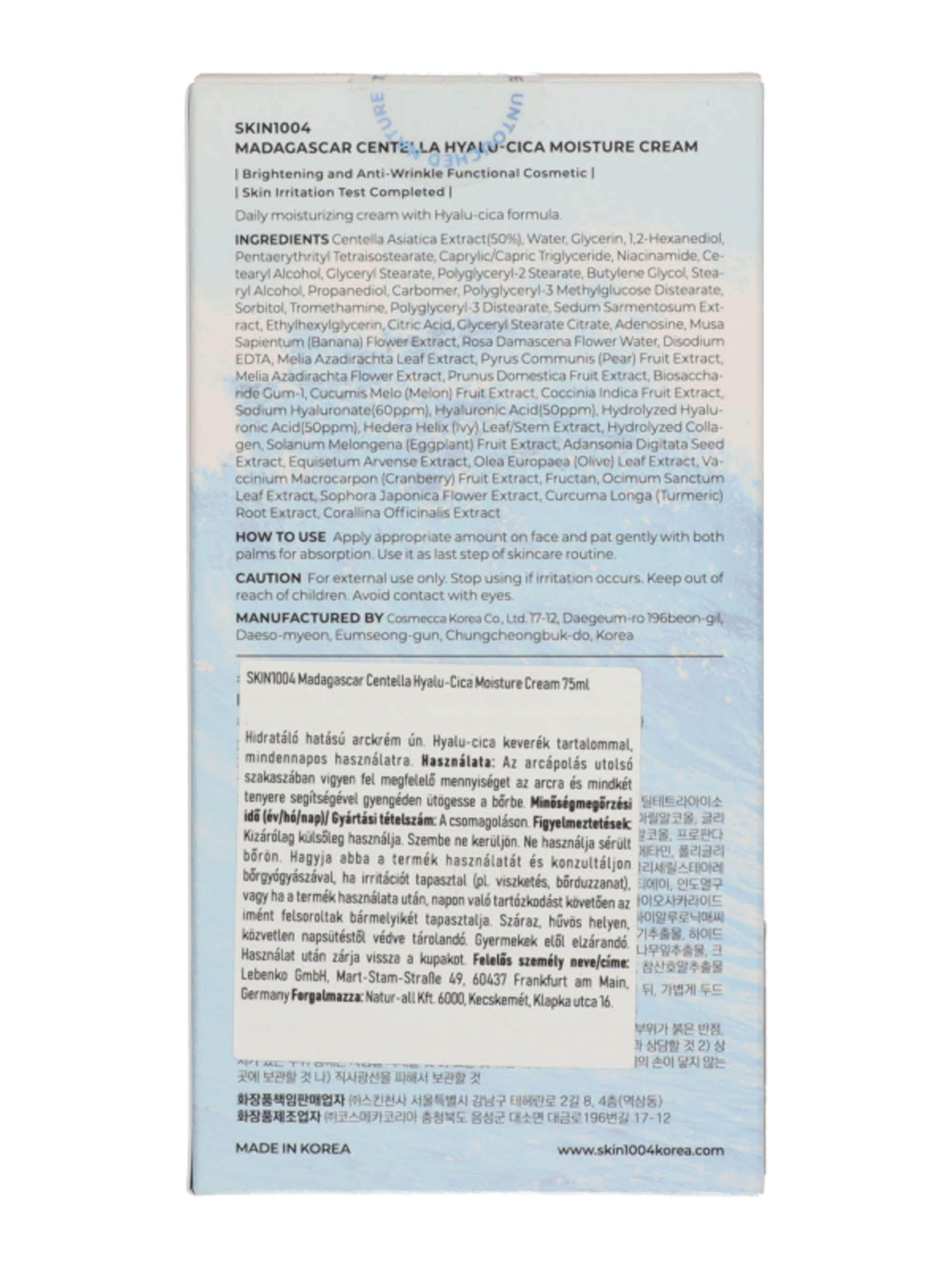 Skin1004 Madagascar Centella hialuron-cica arckrém - 75 ml