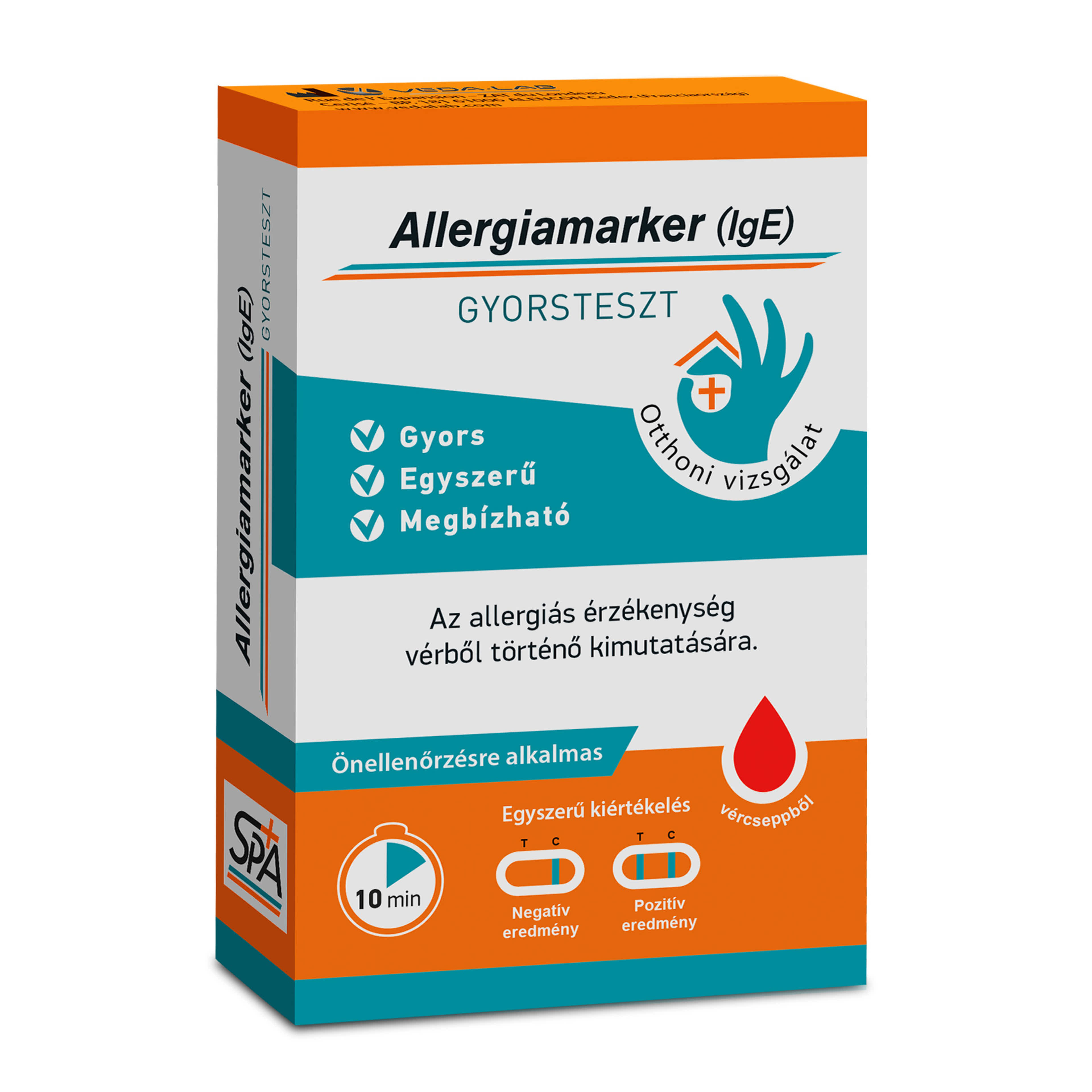 Az allergiás betegek, akik túlérzékenyek bizonyos élelmiszerekre, pollenre, állati szőrre, vagy tollra, az átlagnál nagyobb mennyiségű antitest (IgE: immunglobulin E) termelésével reagálnak. A túlérzékenység kialakulása életkortól független, érinthet gyermekeket, serdülőket és felnőtteket egyaránt. Az allergia legfőbb tünetei a bőrpír, kiütés, tüsszögés, könnyezés vagy az ödéma. Ezek a jelek könnyen összetéveszthetőek a megfázás vagy vírus, illetve baktérium okozta légúti fertőzés tüneteivel. Ezért fontos, hogy ilyen esetekben ellenőrizzük az IgE-szintet. Az allergiára való hajlam örökölhető, ezért abban az esetben is ajánlott az IgE-szint ellenőrzése, ha a családban előfordult már allergiás megbetegedés. Amennyiben az IgE-szintje meghaladja az átlagértéket, konzultáljon orvosával, aki specifikus, az allergén anyagokat pontosan meghatározó vizsgálatokat rendelhet el, ami a későbbiekben személyre szabott kezelést tesz lehetővé. Az Allergiamarker gyorsteszt a vérben található IgE-szintjét méri, ezáltal alkalmas az allergiás túlérzékenység kimutatására. Az Allergia gyorstesztet akkor javasolt elvégezni, ha allergiára jellemző tüneteket tapasztalunk, úgymint kiütések, bőrpír, könnyezés, folyamatos tüsszögés poros közegben, állatokkal (kutya, macska) való érintkezéskor, illetve bizonyos élelmiszerek elfogyasztását követő ödéma jelentkezése esetén.