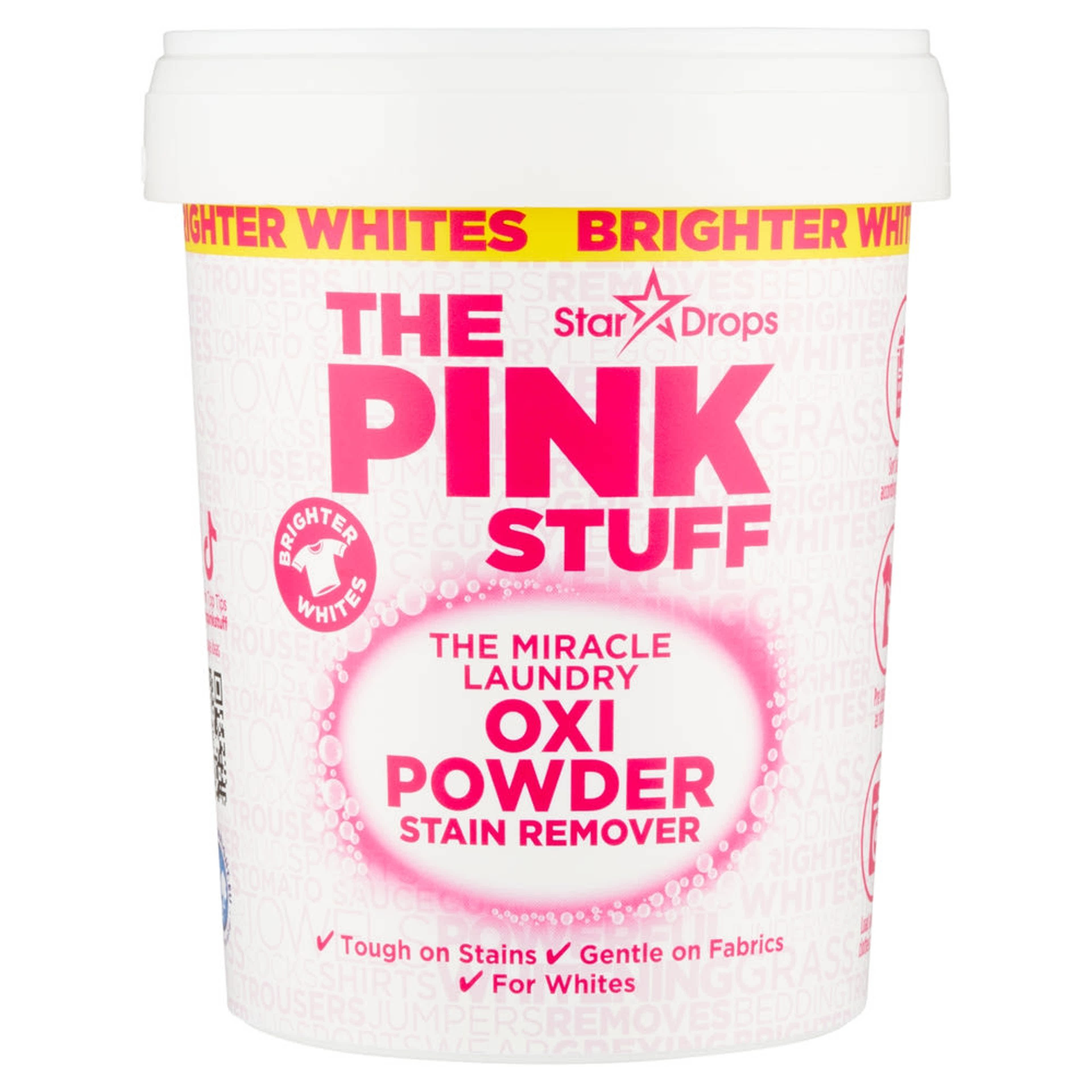 A The Pink Stuff Miracle Laundry Oxi Folteltávolító Por Fehér Ruhákhoz különleges OXI formulájának köszönhetően hatékonyan távolítja el a makacs foltokat, erős vegyszerek használata nélkül. Használható előáztatáshoz vagy a mosás során adalékként - ruhái, törölközői, konyharuhái és ágyneműi friss, tiszta illatúak lesznek, a The Pink Stuff egyedi, ikonikus illatával. A szennyeződések ellensége 1938 óta. Szórakozássá teszi a takarítást!