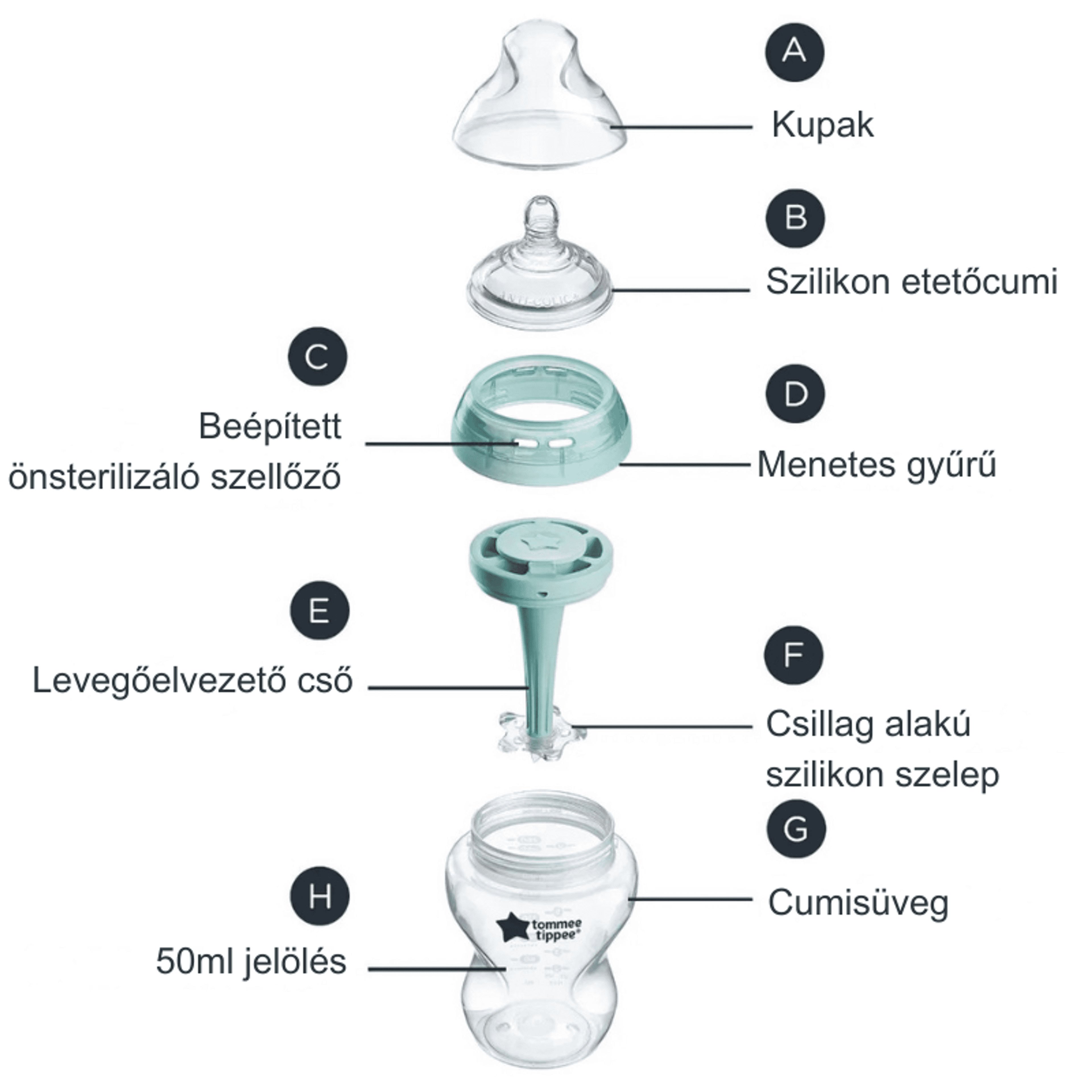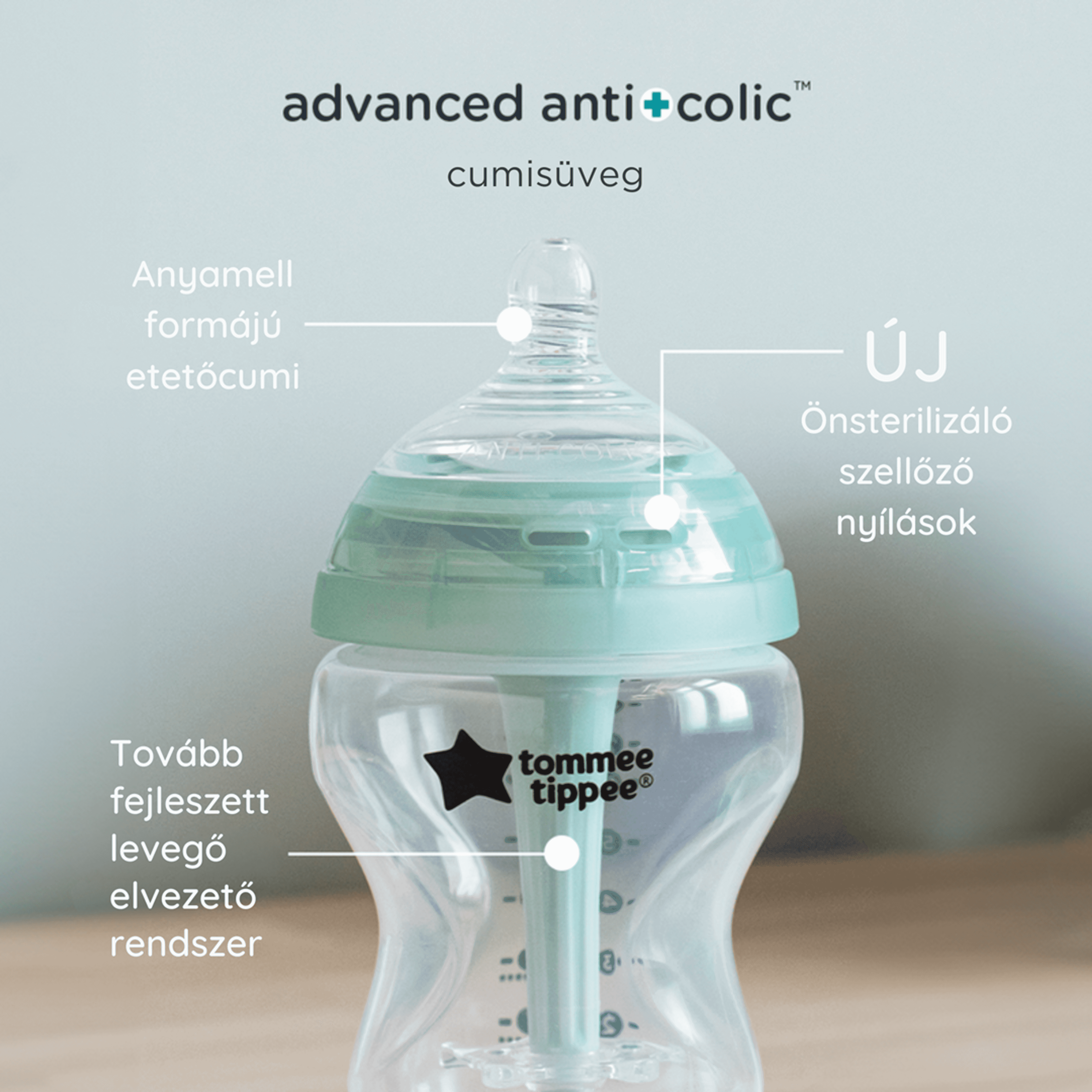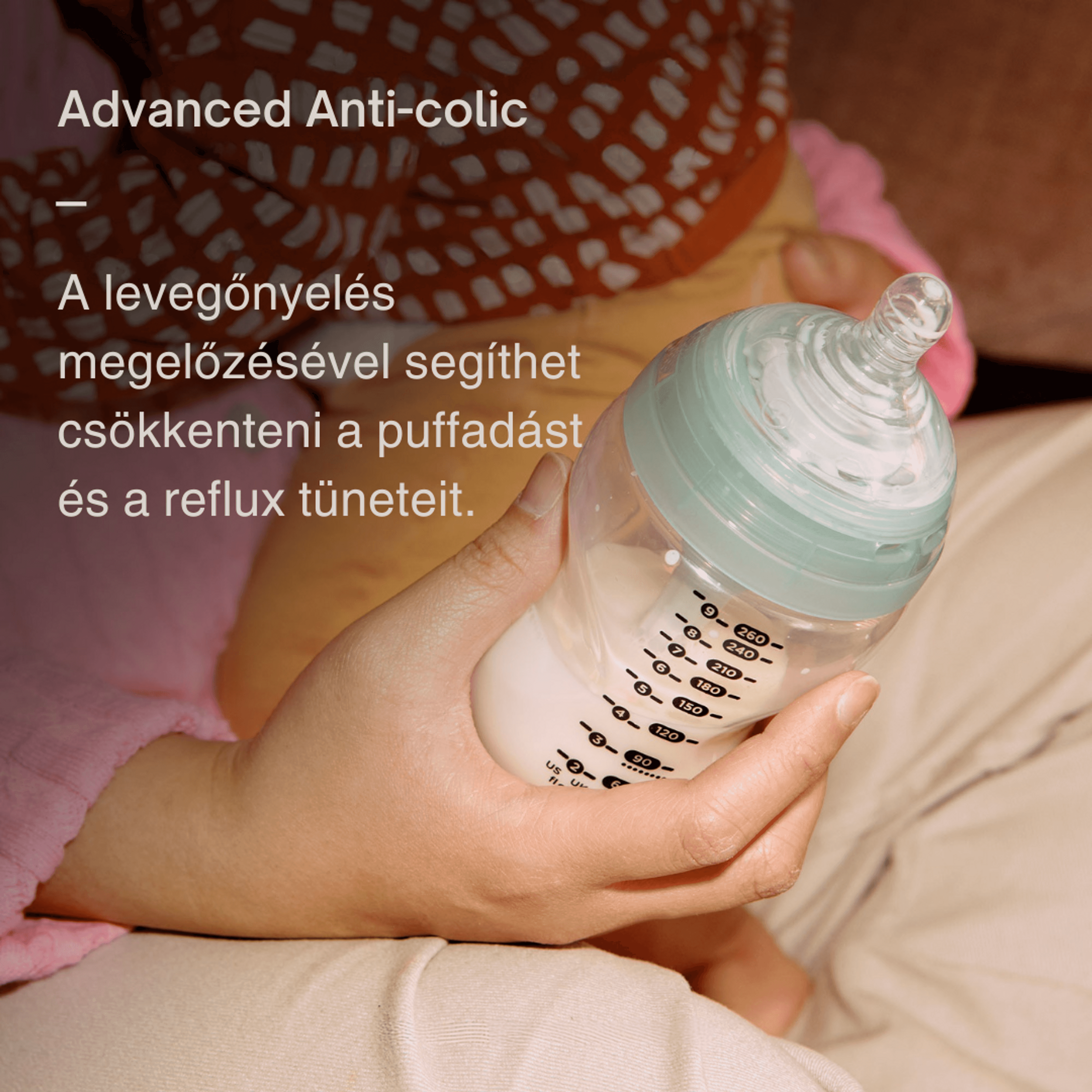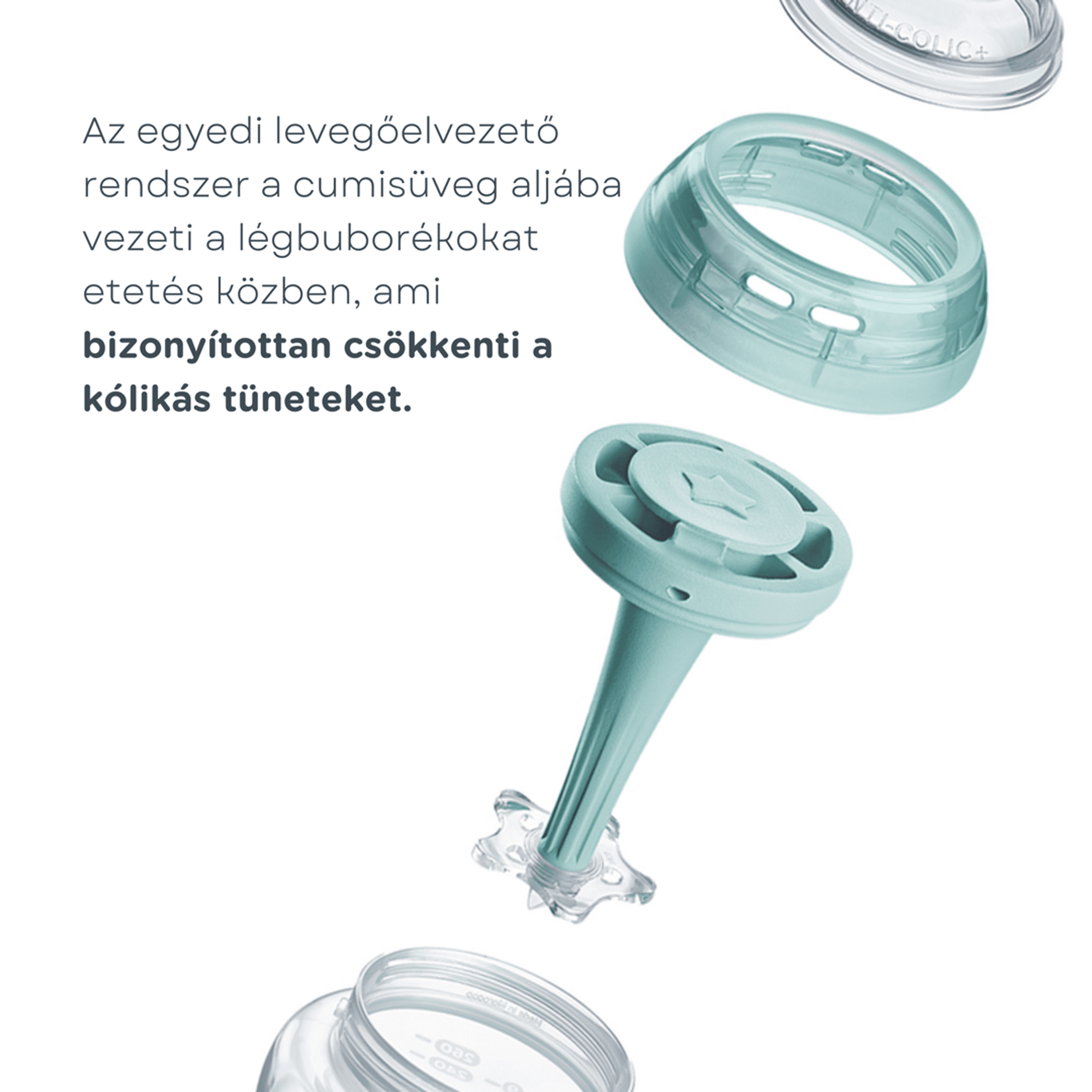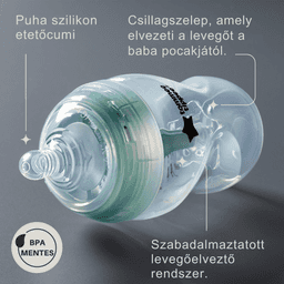 · - Innovatív kólika elleni technológia: A szabadalmaztatott levegő elvezető rendszer biztosítja az optimális levegőelvezetést az etetés során, aminek köszönhetően kevesebb levegő kerül beszívásra, ami bizonyítottan csökkenti a kólika tüneteit.