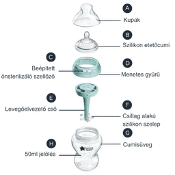 · - Önsterilizáló: A Tommee Tippee Natural Start cumisüvegek egyszerűen, mindössze három perc alatt önsterilizálhatók a mikrohullámú sütőben.