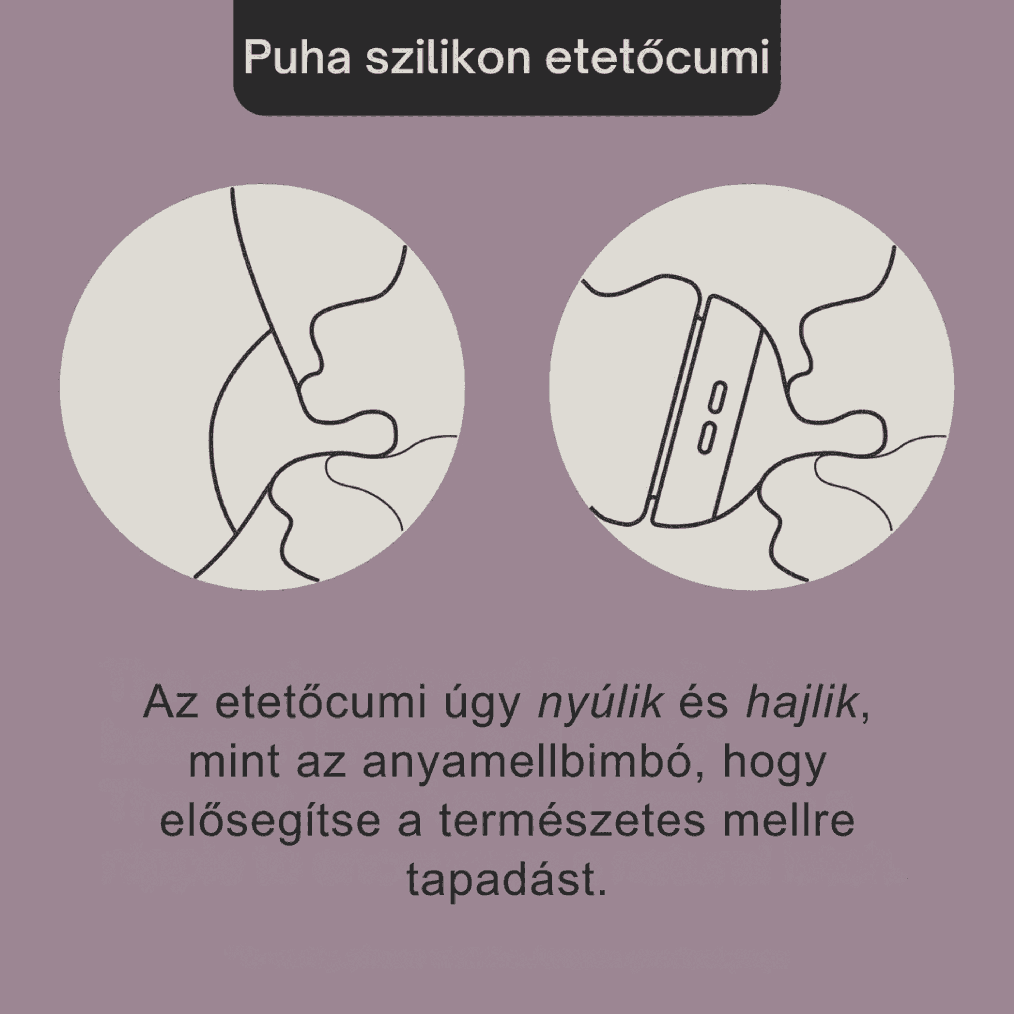 · - Igény szerinti etetés: A puha szilikon cumi úgy hajlik és nyúlik, mint egy mellbimbó, és lehetővé teszi, hogy a baba kényelmesen, saját tempójában egyen.