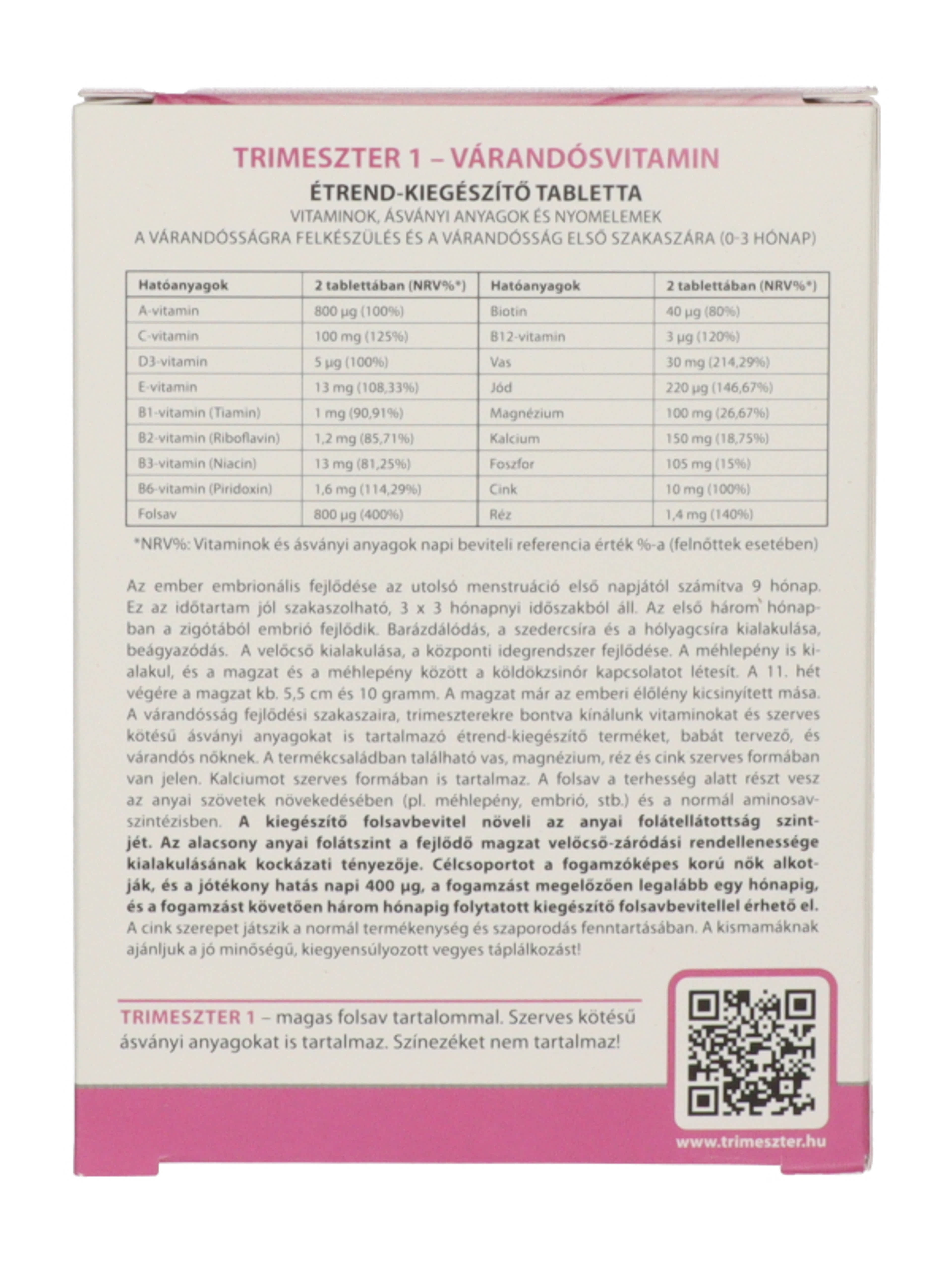 Trimeszter 1 várandós vitamin 0-3 hónap - 60 db
