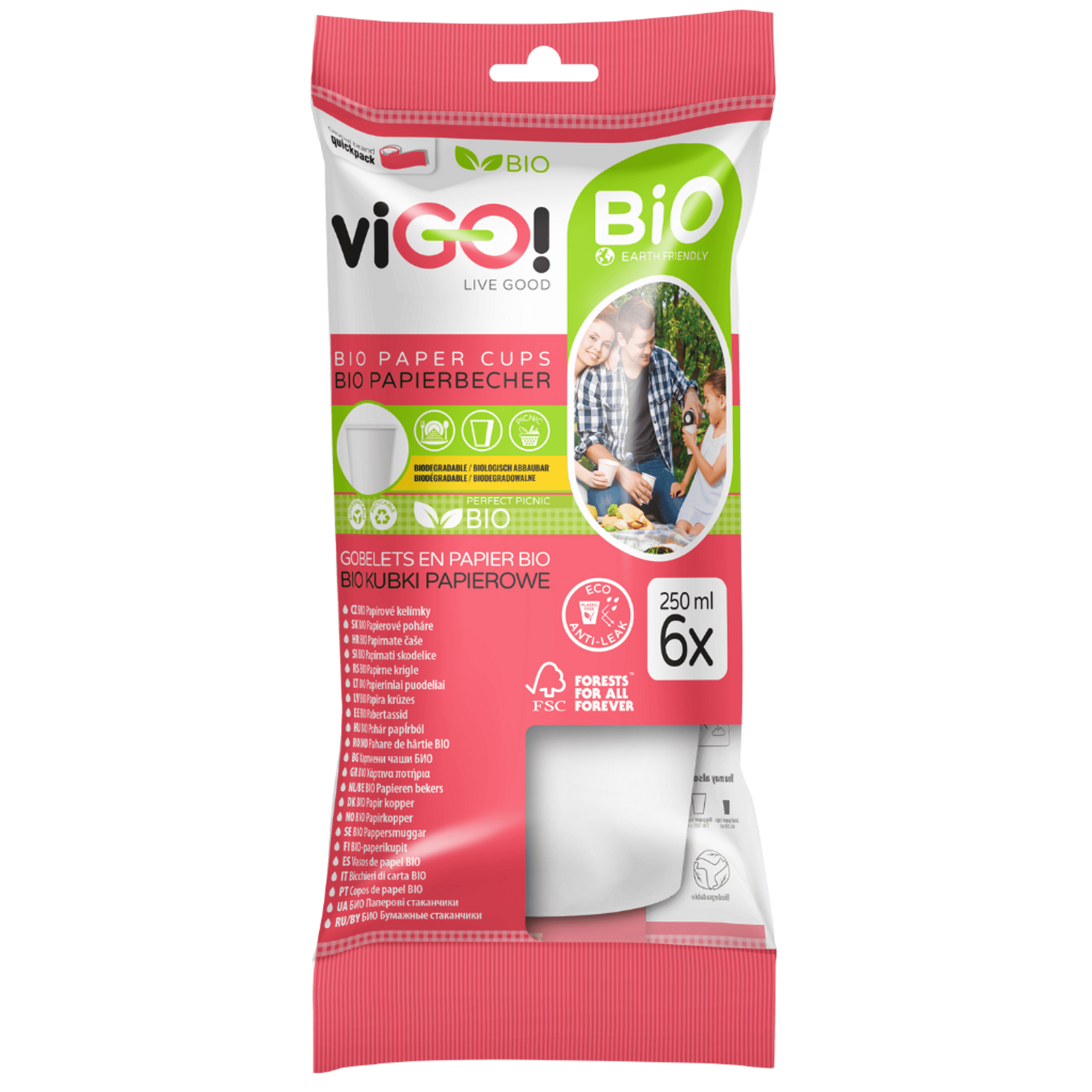 viGO! Bio papír pohár 250 ml-es /fehér - 6 db