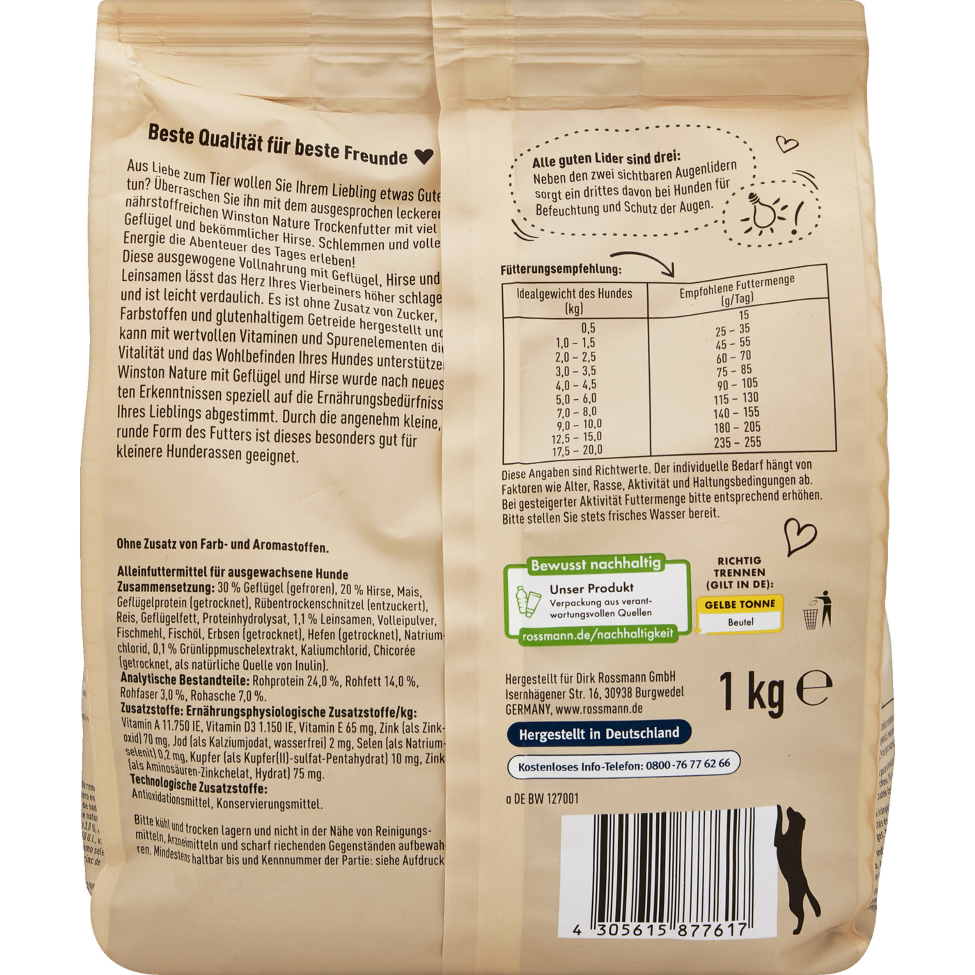 Winston mini száraz állateledel felnőtt kutyáknak baromfival és kölessel - 1000 g