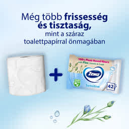 Zewa Sensitive nedves toalettpapír: kiemelkedő tisztaságérzet, gyengéd gondoskodás. Illatmentes, a toaletten lehúzható.